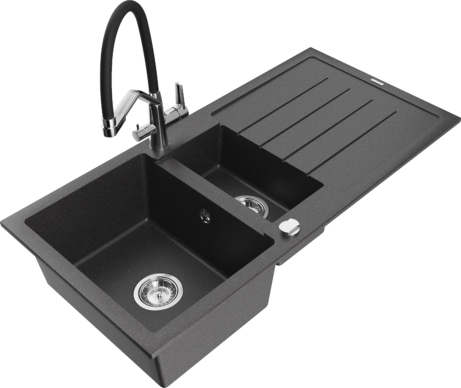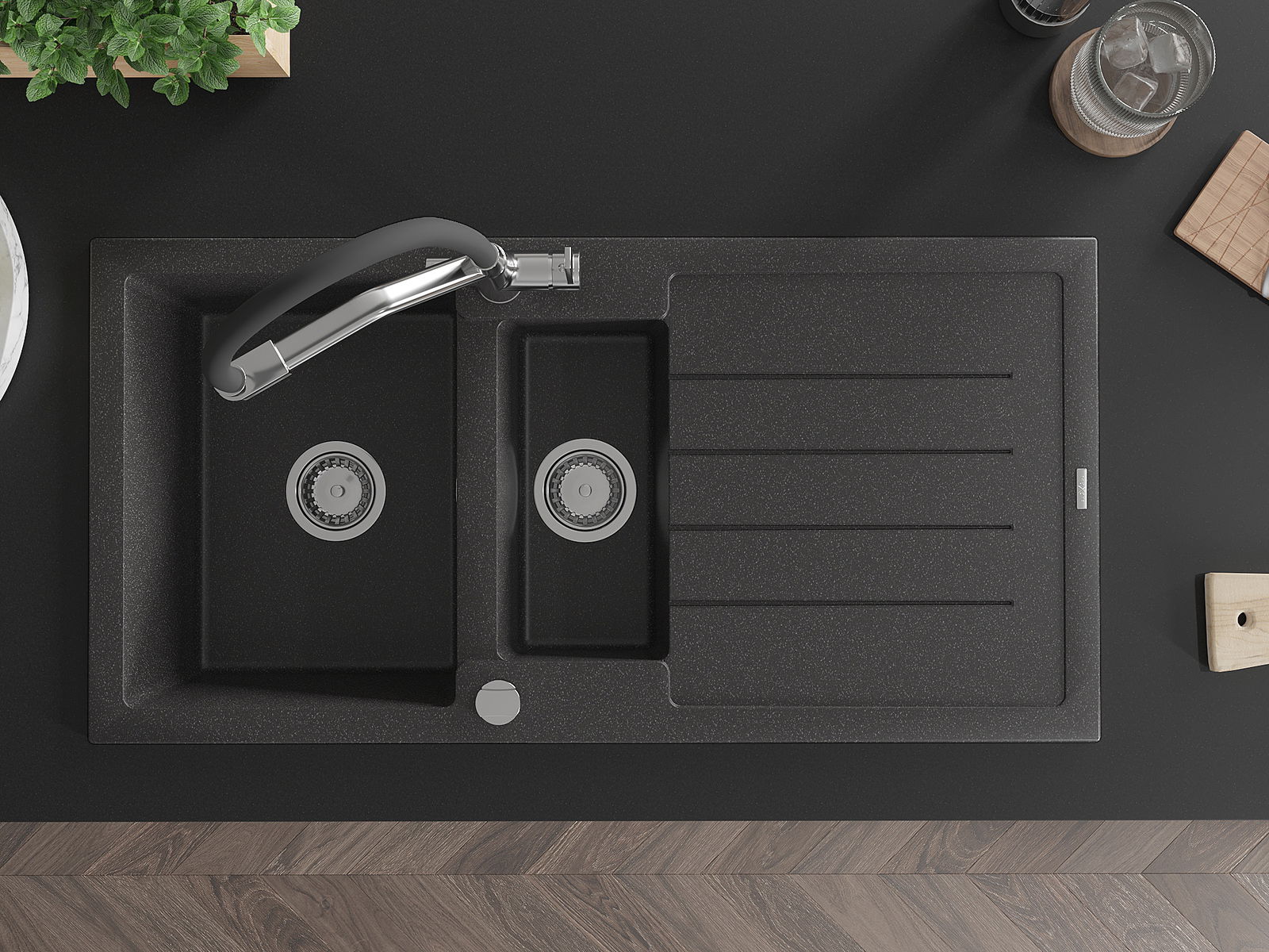Choosing a sink with a draining board is a practical solution that allows you to set aside washed dishes or vegetables and fruits. The draining board makes daily cooking easier and helps maintain order in the kitchen.