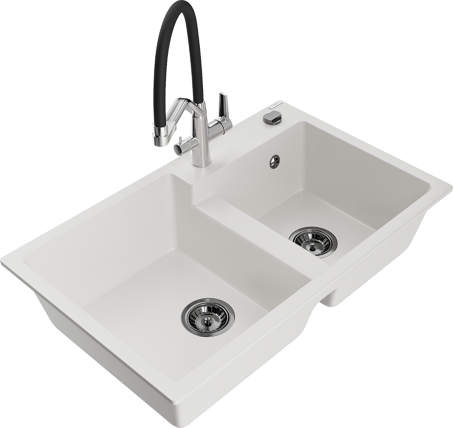 Mexen Tomas granite sink 2-bowl with kitchen tap Duo, white - 6516-20-671701-07-B