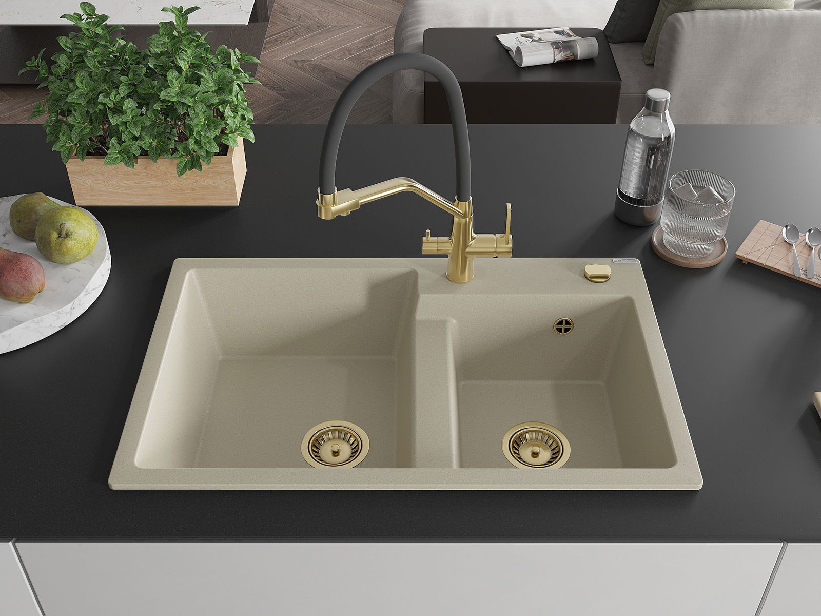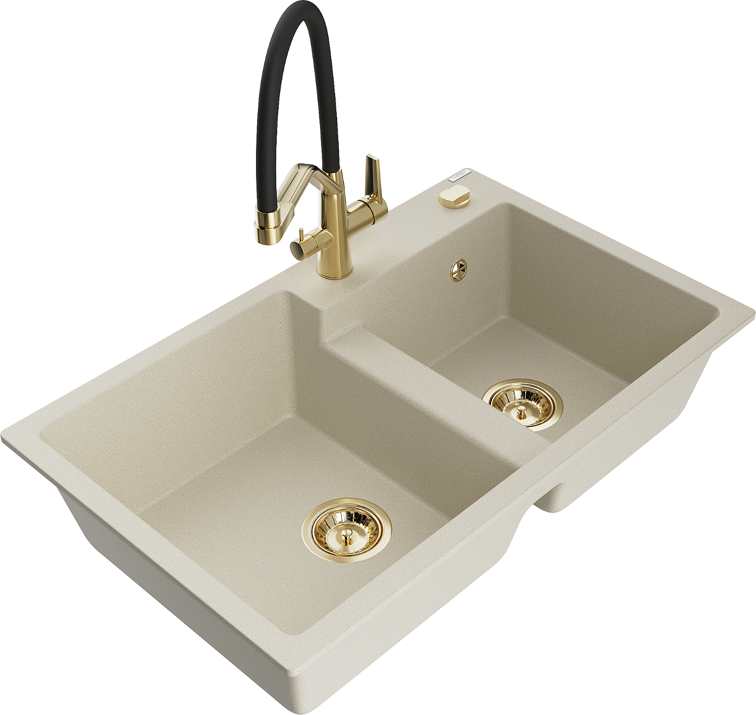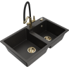 Mexen Tomas granite double bowl sink with Duo kitchen tap, beige - 6516-69-671701-57-G