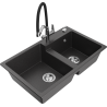 Mexen Tomas granite kitchen sink 2-bowl with Duo kitchen tap, grey - 6516-71-671701-07