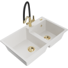 Mexen Tomas granite 2-bowl sink with Duo kitchen tap, grey - 6516-71-671701-57-G