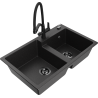 Mexen Tomas granite sink with 2 bowls and Duo kitchen tap, grey - 6516-71-671701-70-B