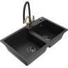 Mexen Tomas 2-basin granite kitchen sink with Duo tap, speckled black - 6516-76-671701-57-B