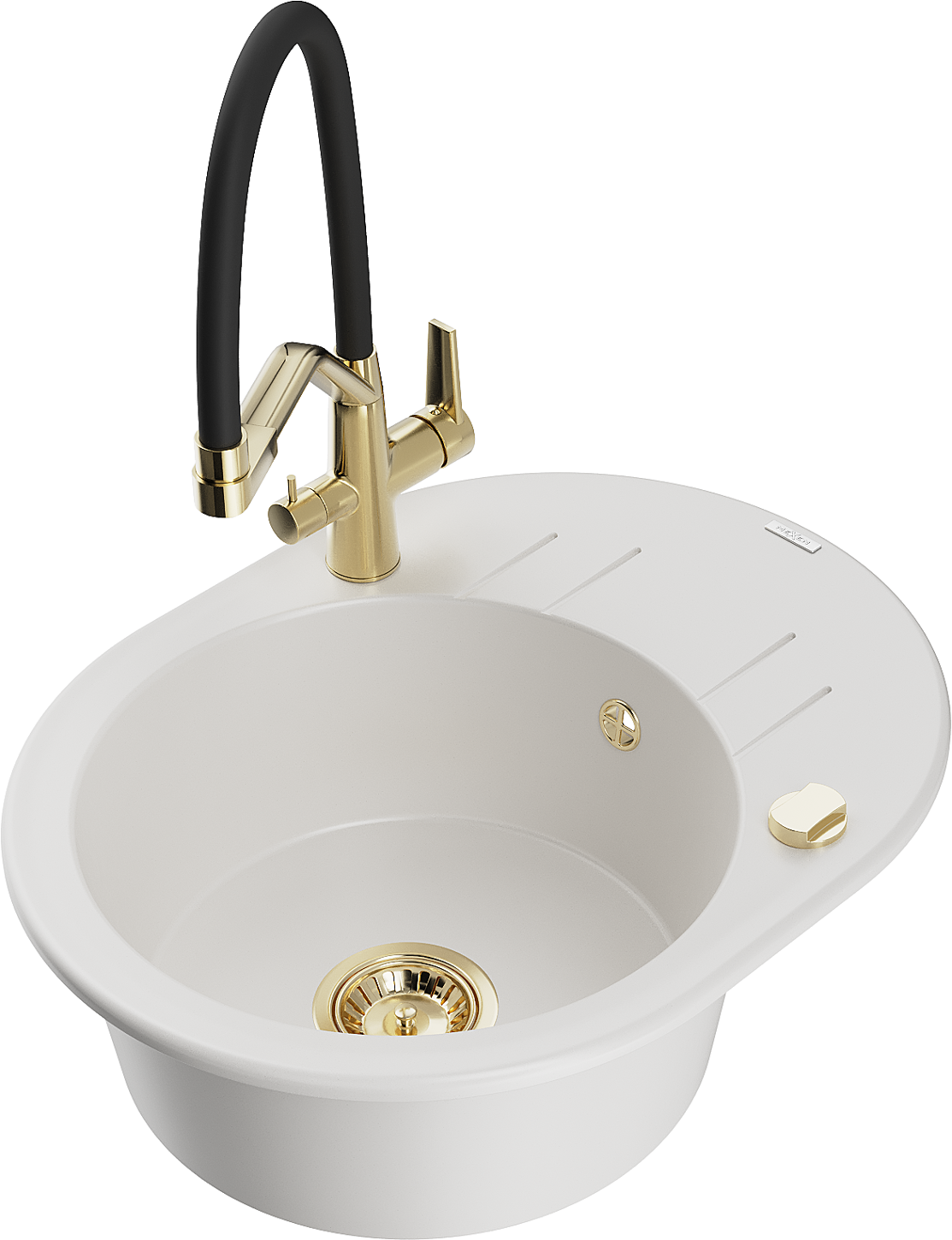 Mexen Kevin 1-bowl granite sink with Duo kitchen tap, white - 6517-20-671701-57-G