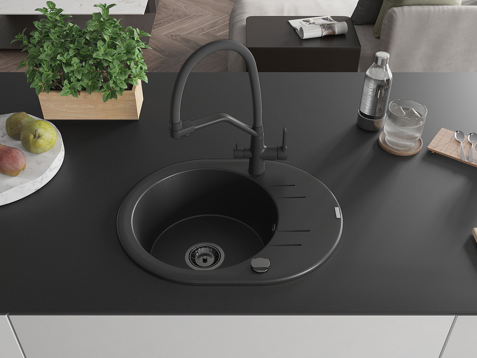 The sink is made from high-quality granite. It serves as an elegant and, above all, practical addition to any kitchen, regardless of its style. The high quality and durability of granite ensure many years of use.