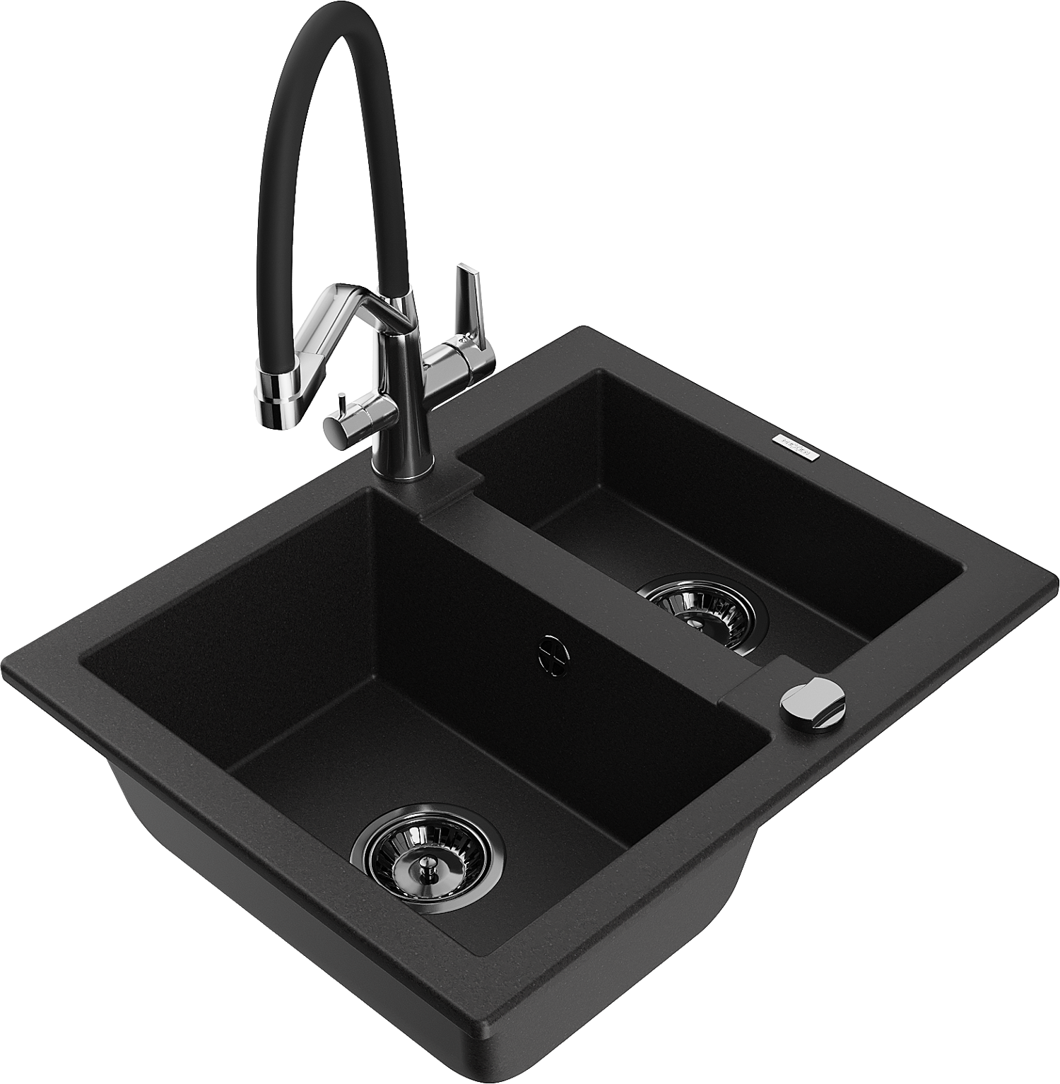 Mexen Carlos 1.5-bowl granite kitchen sink with Duo tap, black - 6518-77-671701-07-B