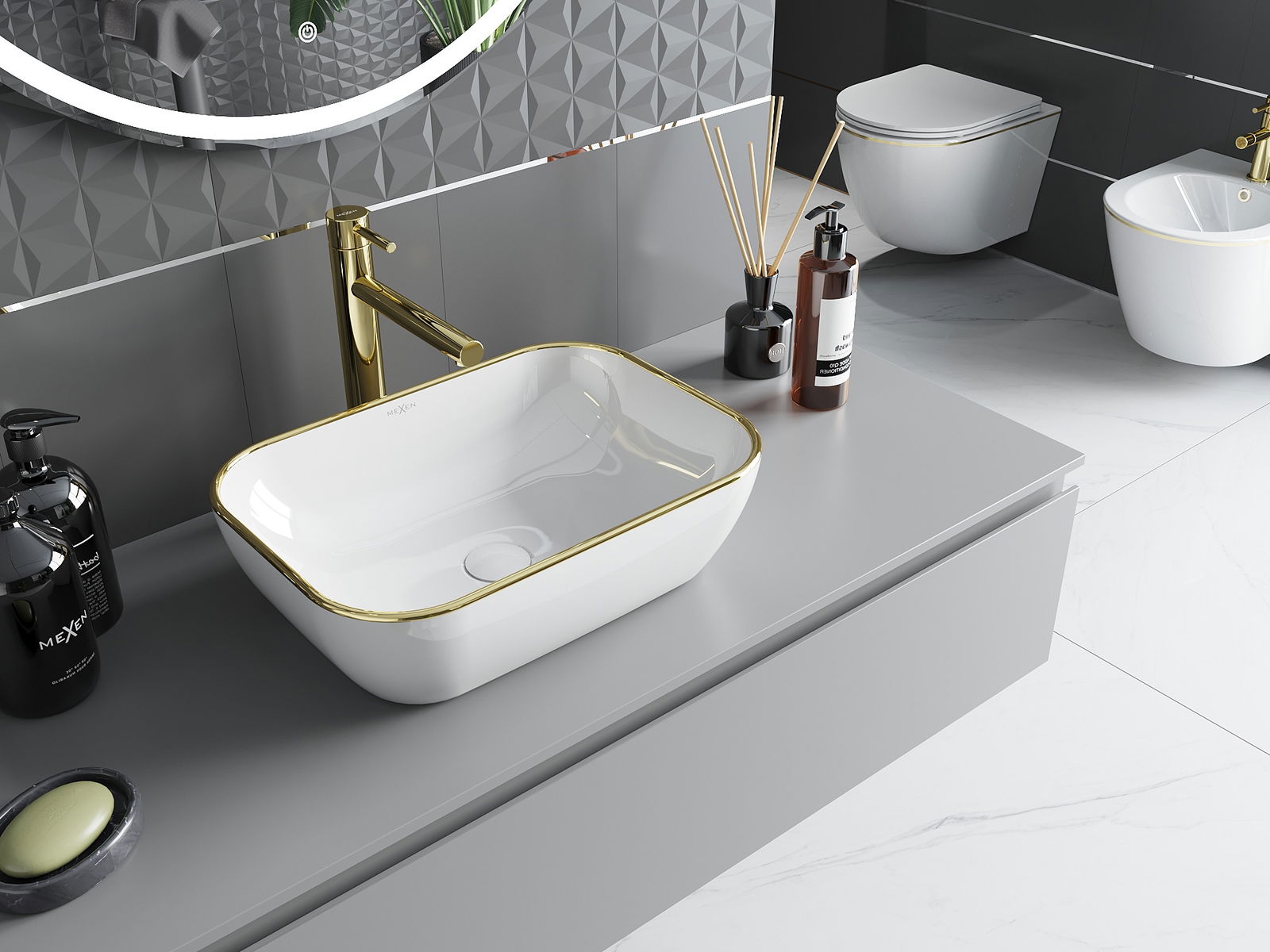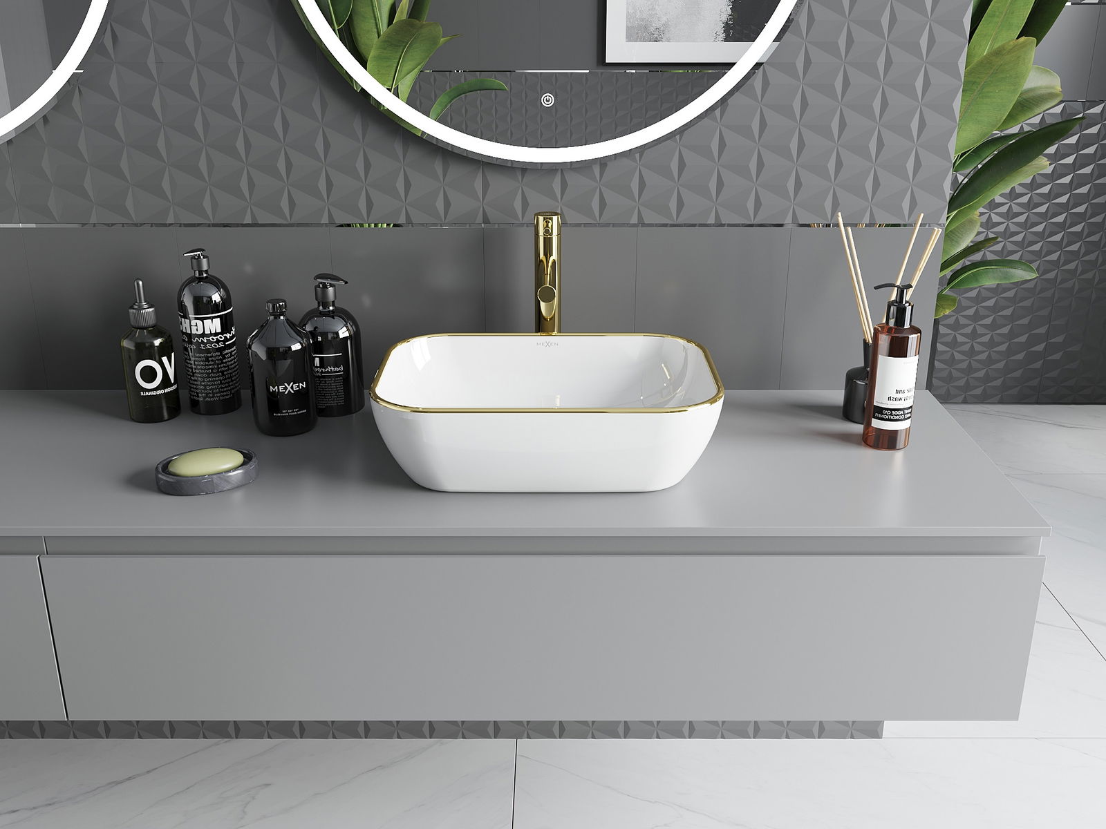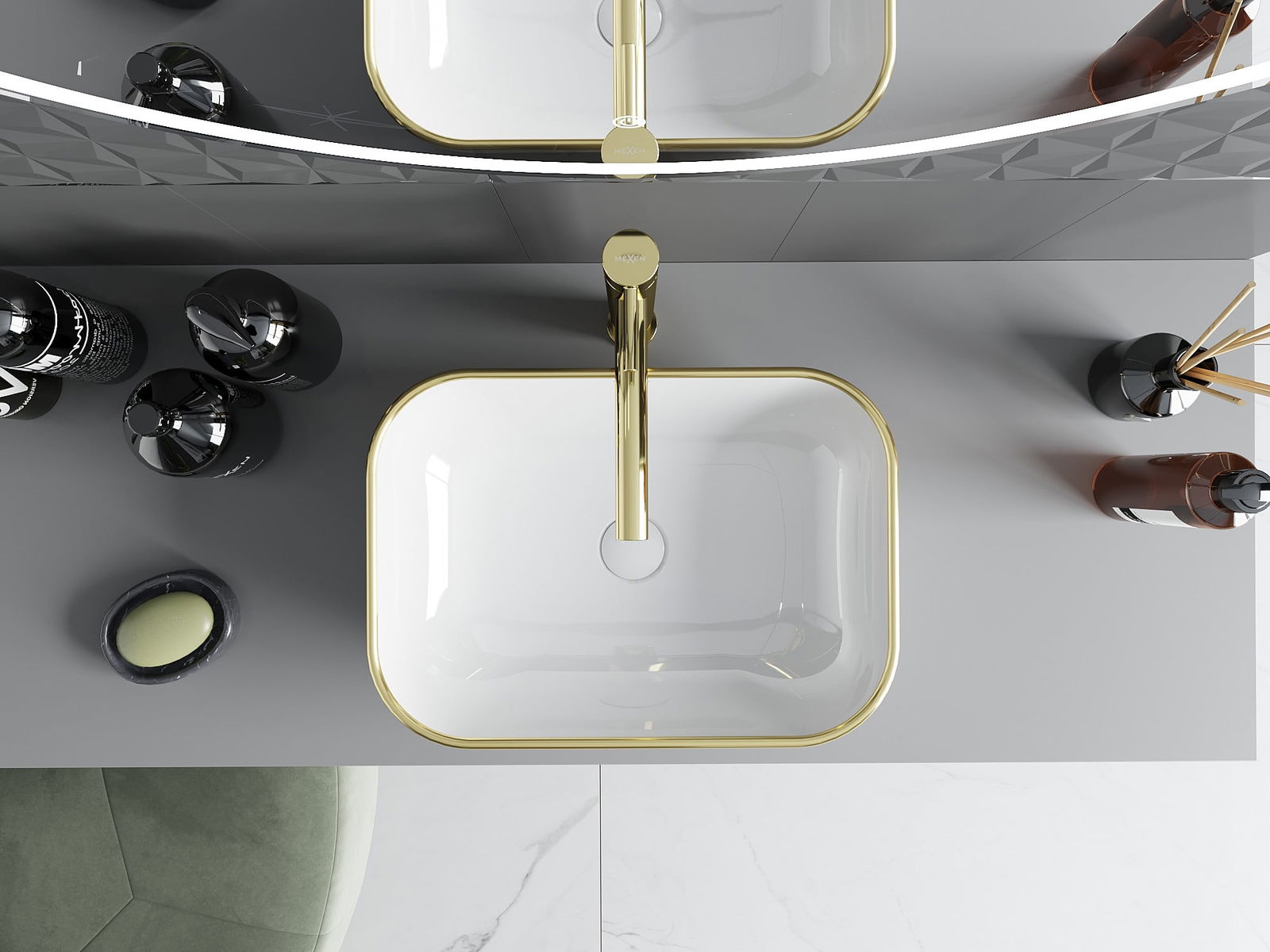 Mexen Rita countertop washbasin 45 x 32 cm, white/gold rim - 21084505