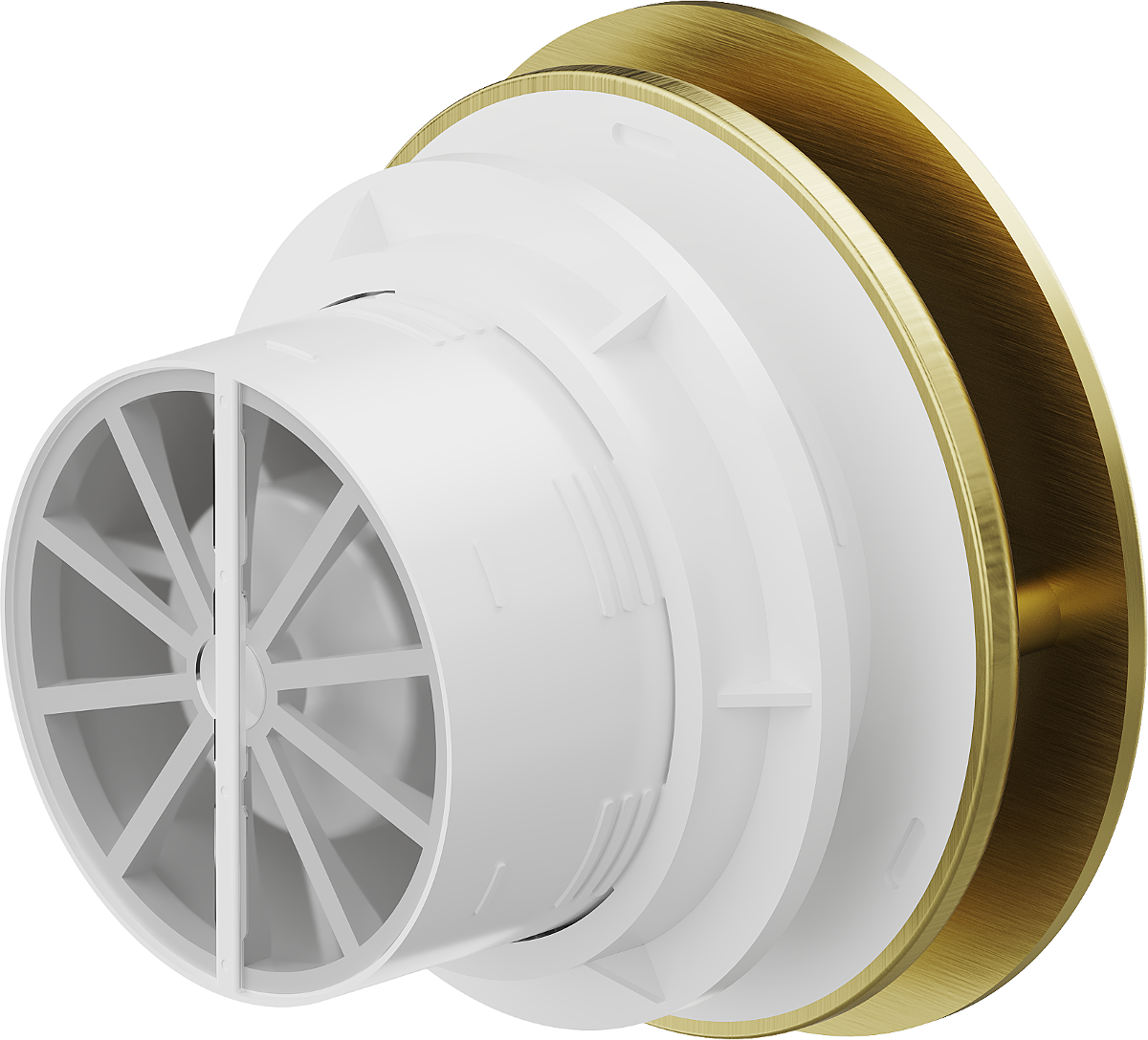 - Backdraft damper to prevent backflow of air from ventilation ducts into the room
