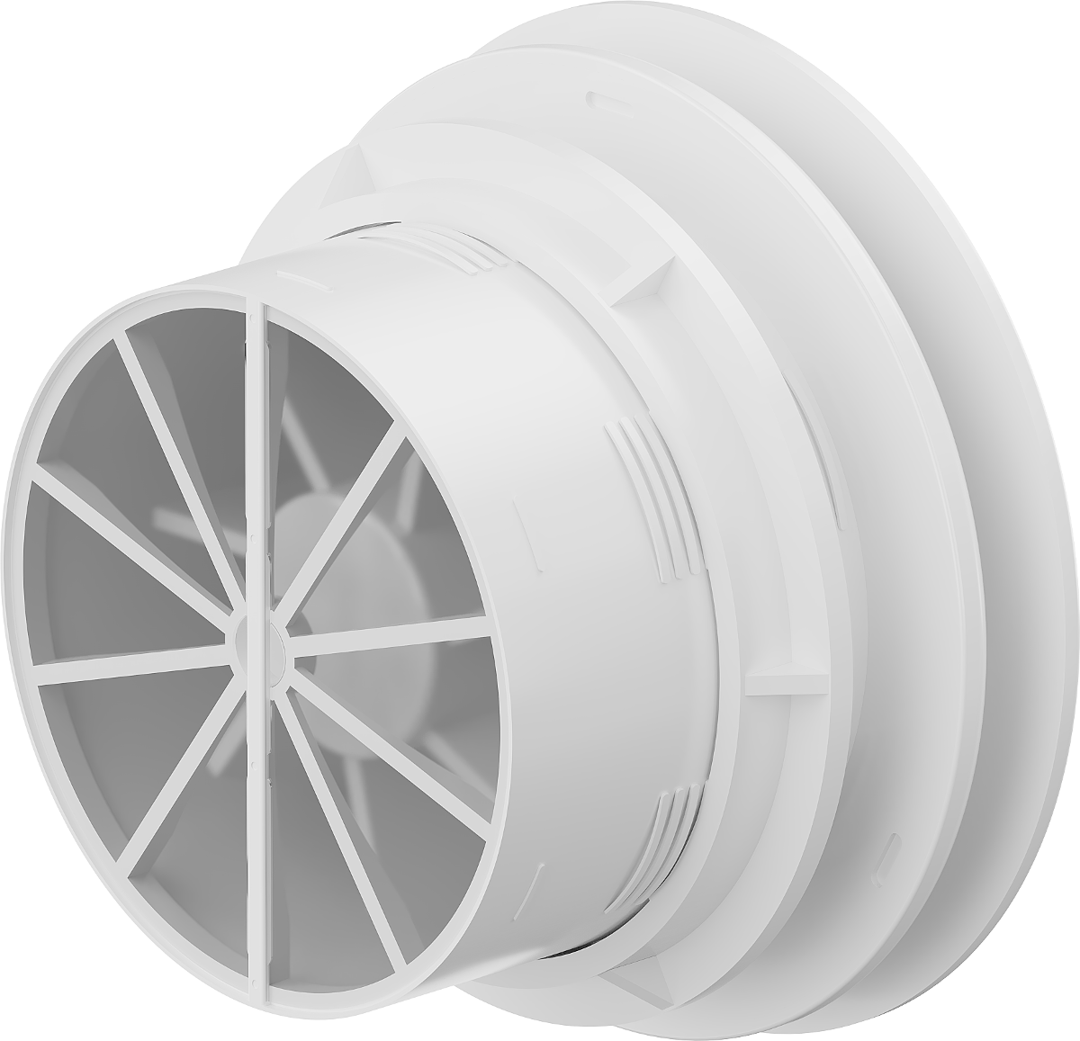 The device is equipped with a mechanism that prevents air from flowing back into the room after the fan is switched off. It is especially useful in bathrooms, where preventing unwanted airflow can improve comfort and hygiene.