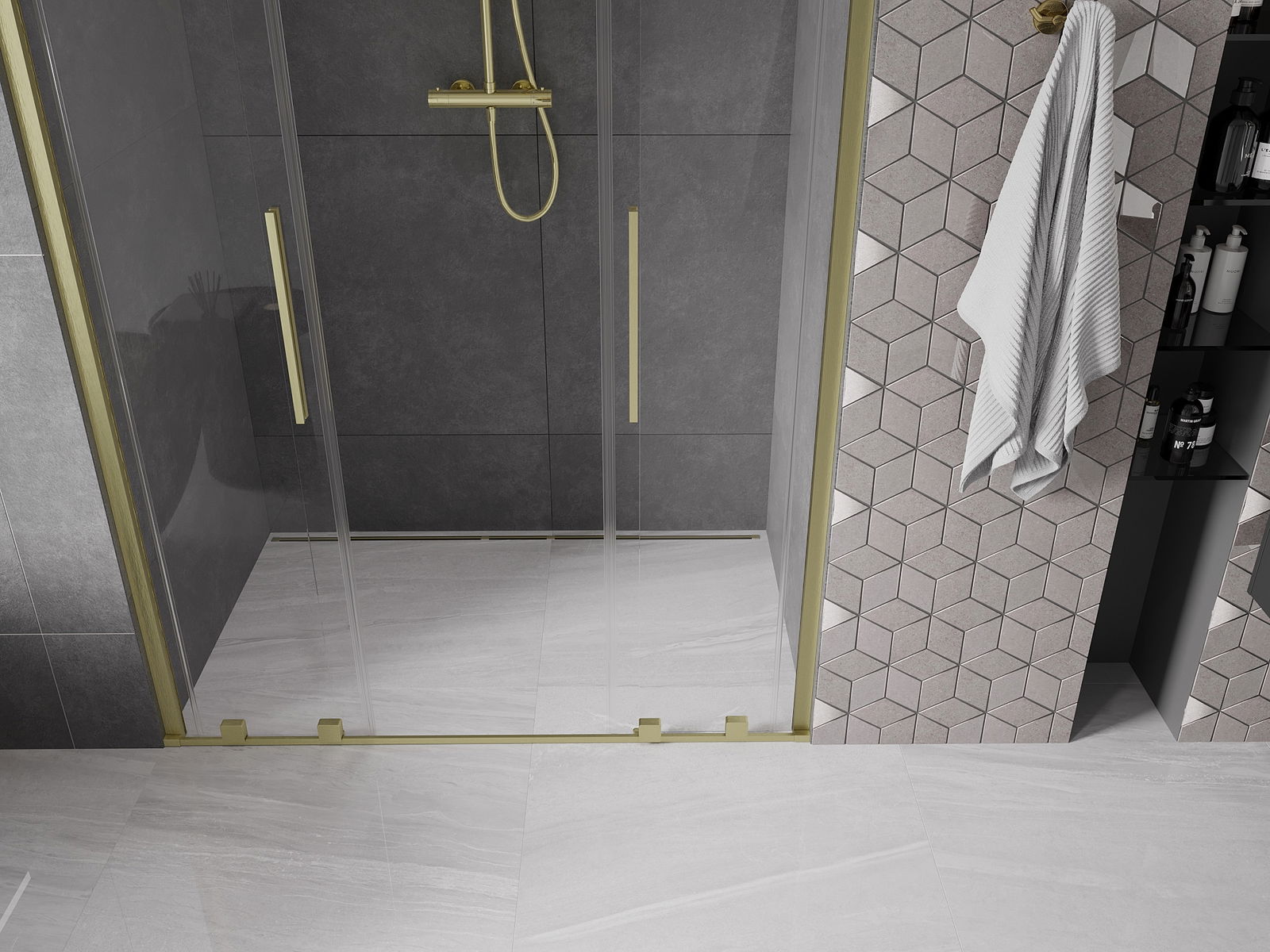 A handy and convenient handle made of stainless steel. The stylish shape combined with a finish that matches the color of the profiles gives a modern and stylish look, highlighting the aesthetics of any bathroom.
