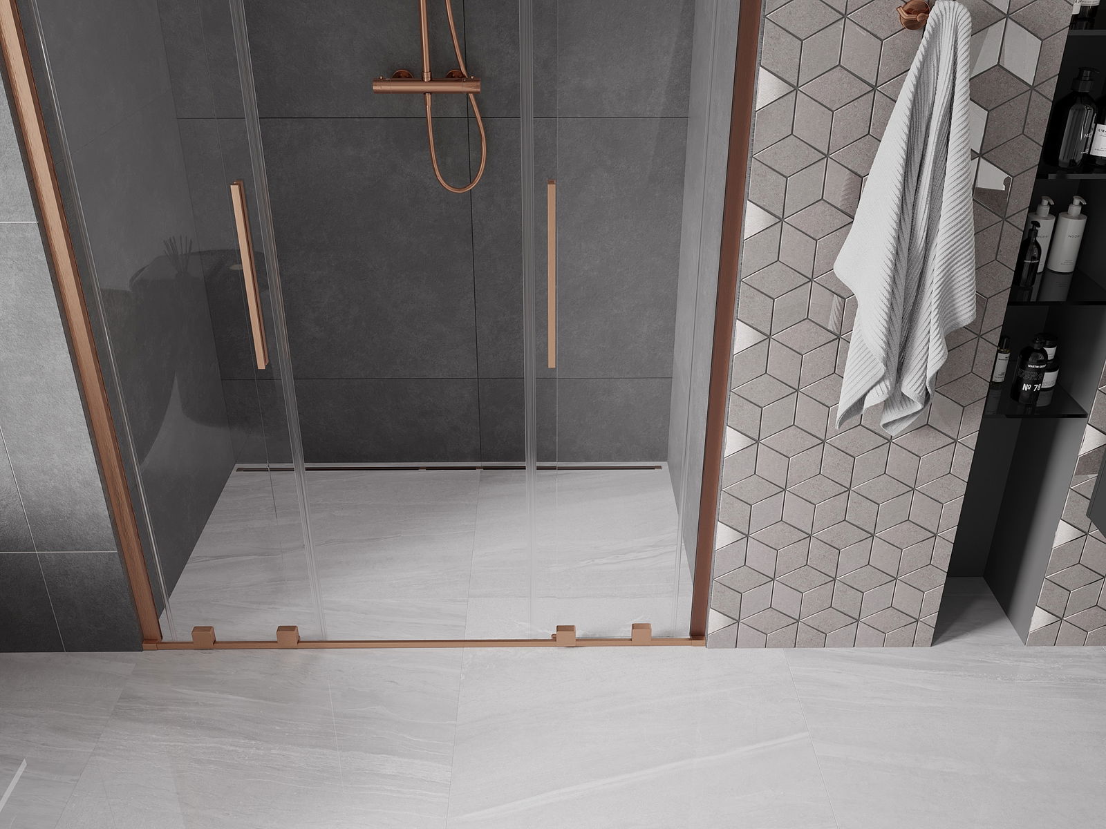 Mexen Velar Duo sliding shower door 140 cm, transparent, brushed copper - 871-140-000-02-65
