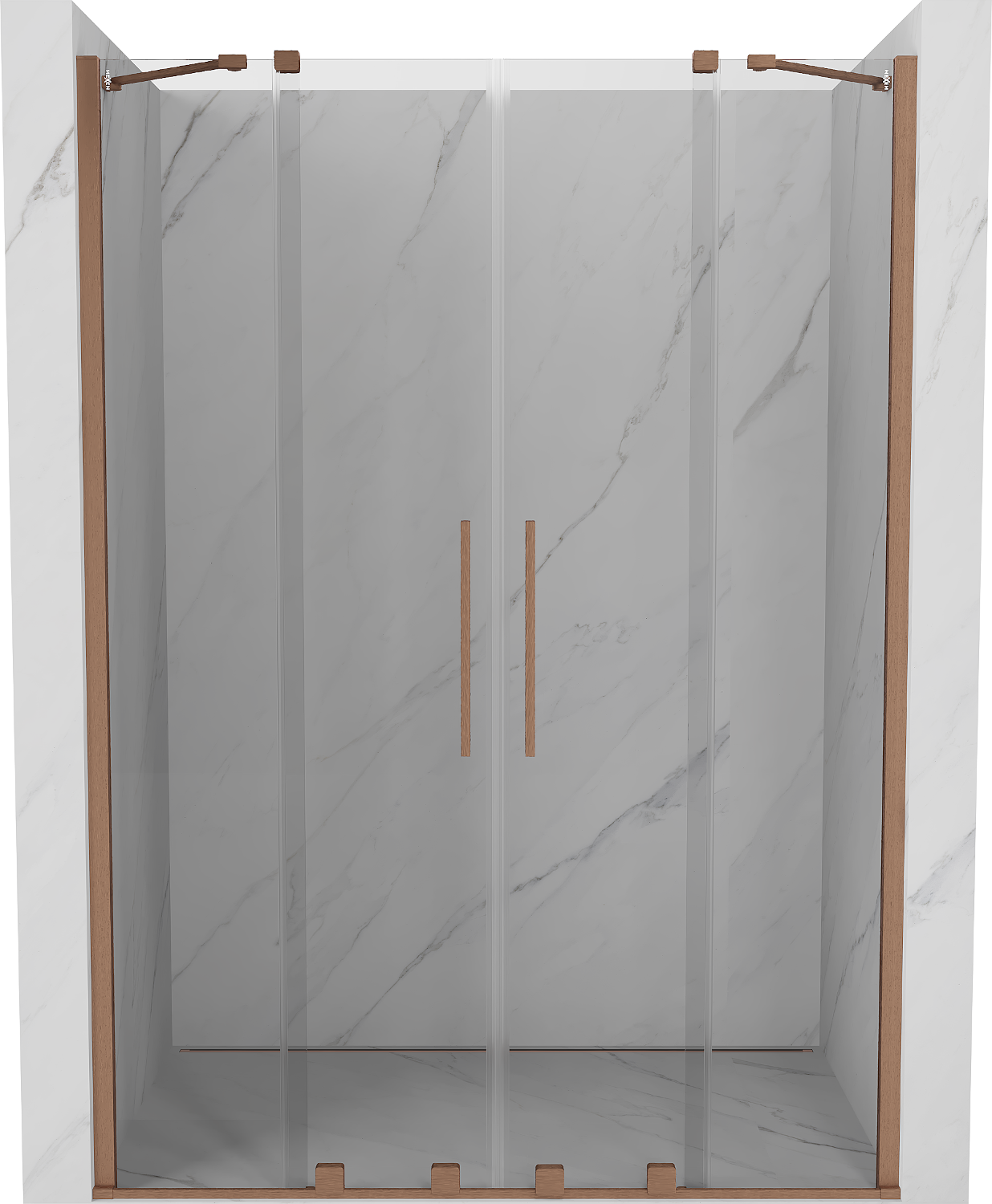 Mexen Velar Duo 160 cm Sliding Shower Door, Transparent, Brushed Copper - 871-160-000-02-65