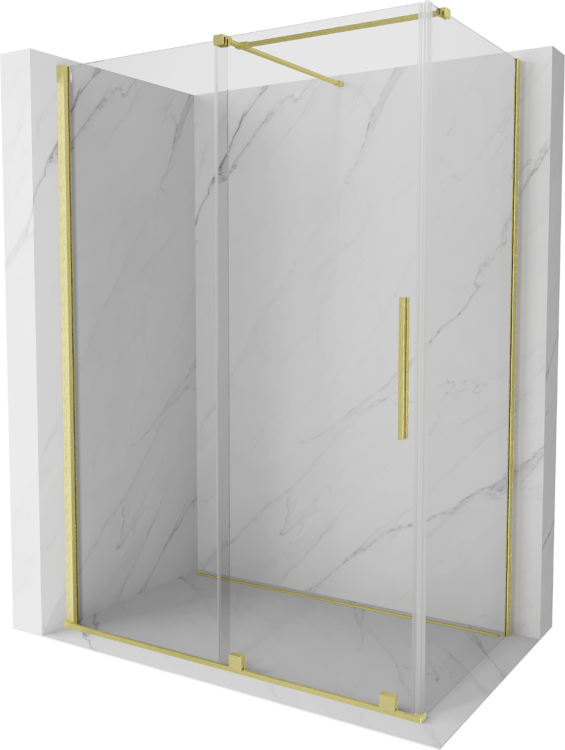 Mexen Velar sliding shower cabin 150 x 85 cm, transparent, brushed gold - 871-150-085-01-55