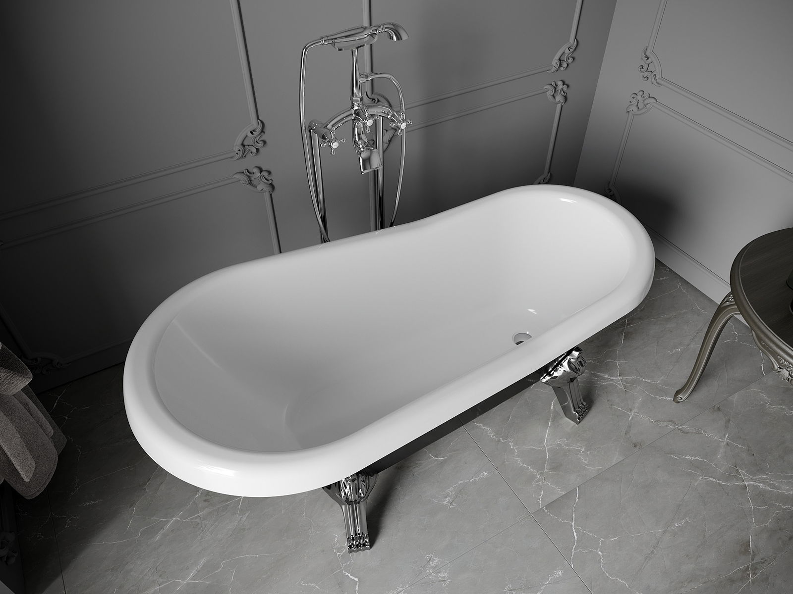 The bathtub is equipped with adjustable legs that allow you to level the tub even on an uneven surface. A practical solution providing greater stability and safety during use and ease of installation.