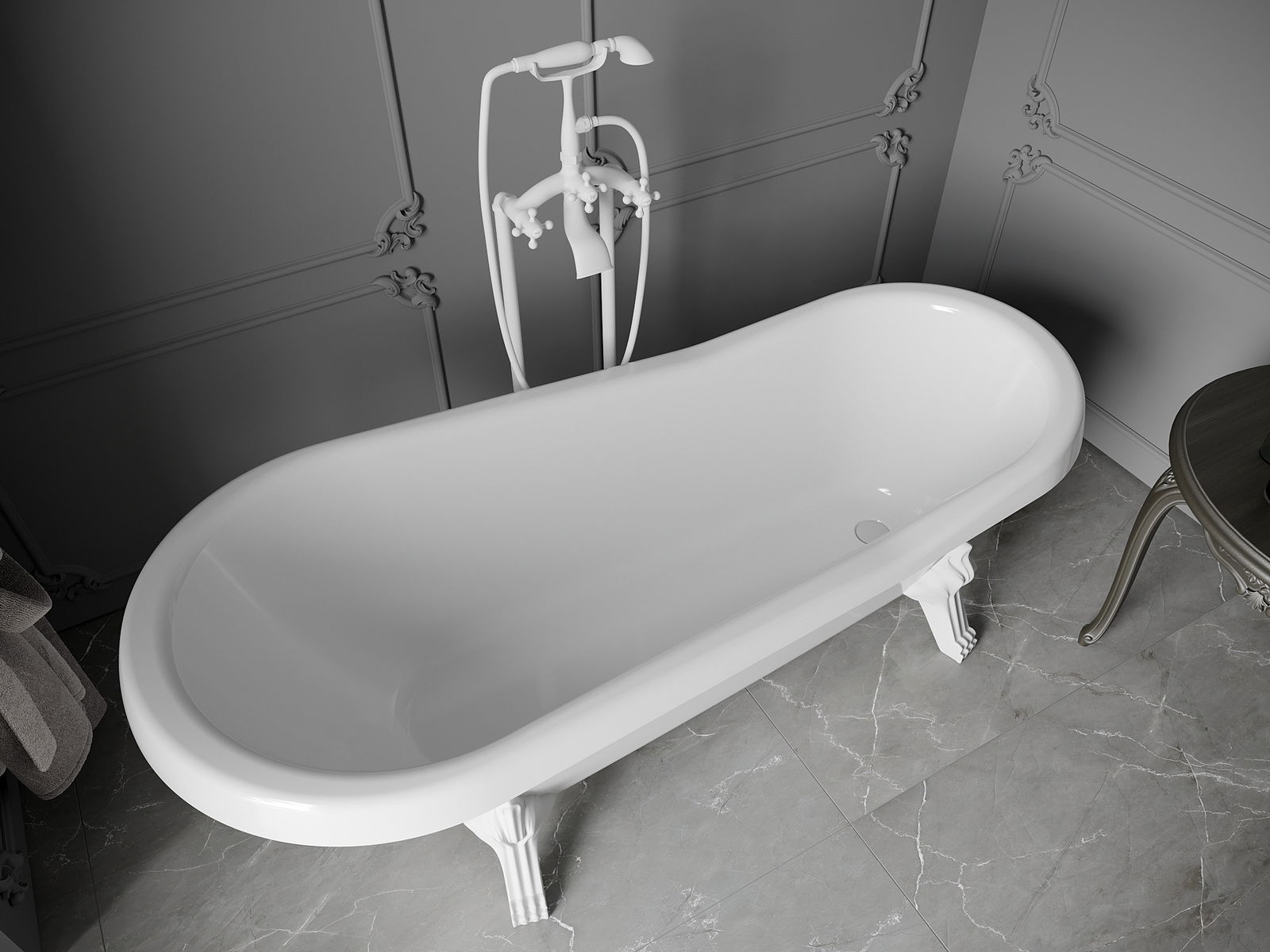 The bathtub is equipped with adjustable legs that allow you to level the tub even on an uneven surface. A practical solution providing greater stability and safety during use and ease of installation.
