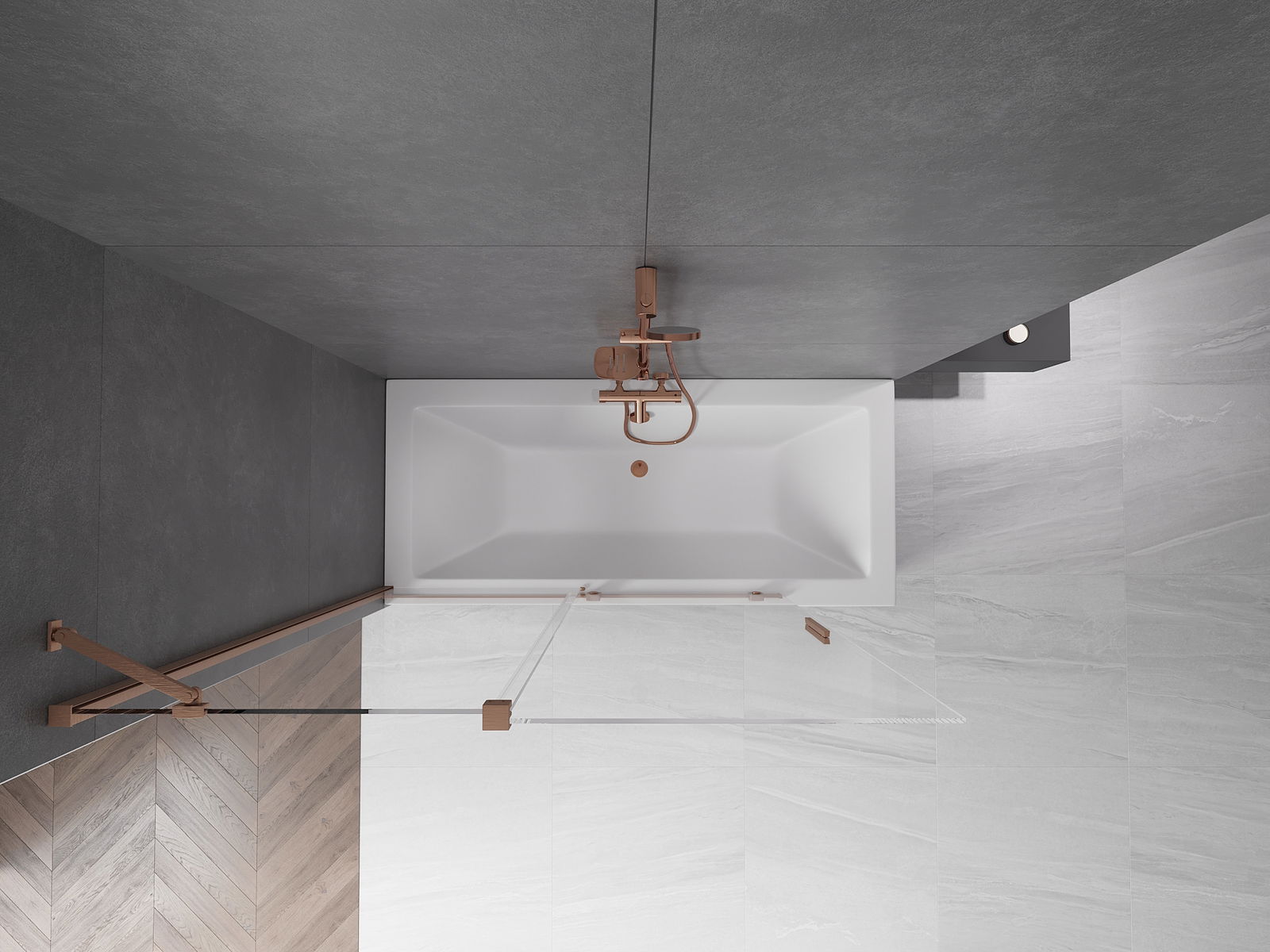 Mexen Velar 2-panel sliding bath screen 140 x 150 cm, transparent, brushed copper - 896-140-000-01-65