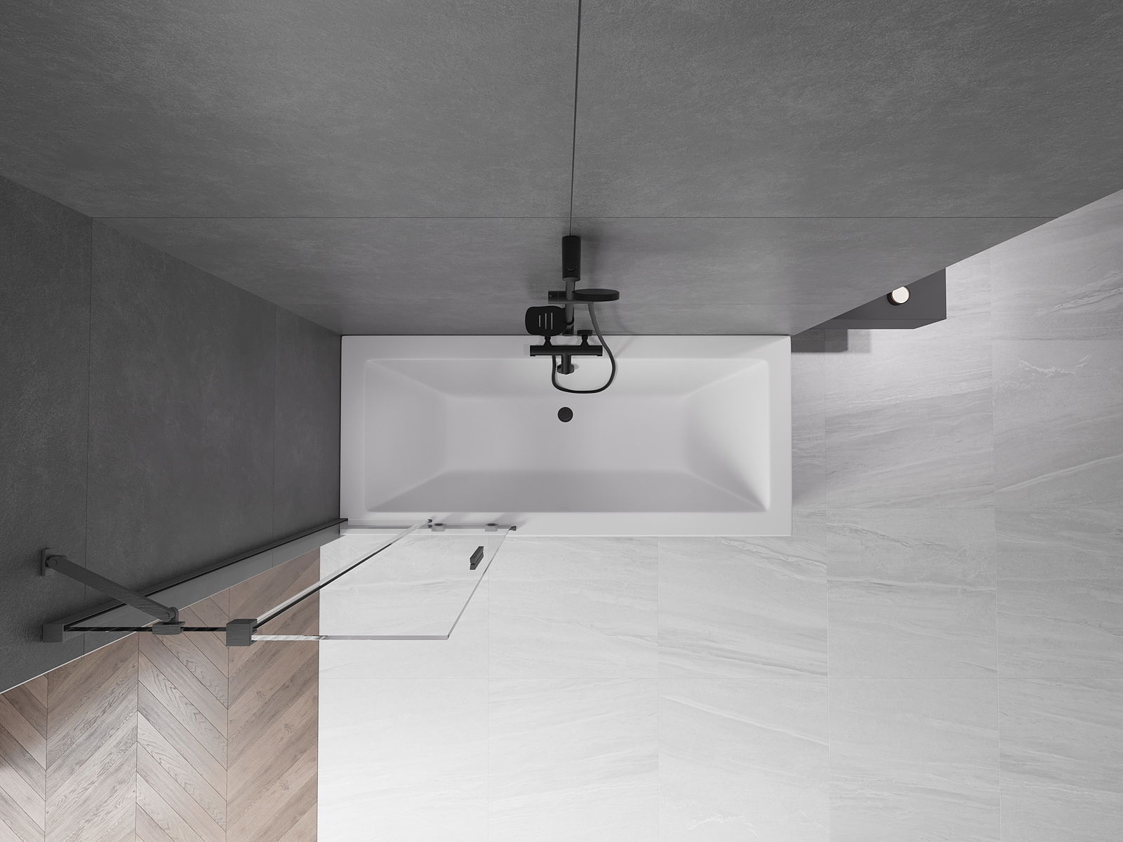Effective protection against water spilling during bathing. The screen has seals that perfectly fit the glass surface and the edge of the bathtub. A functional solution ensuring safety and easy maintenance of cleanliness.