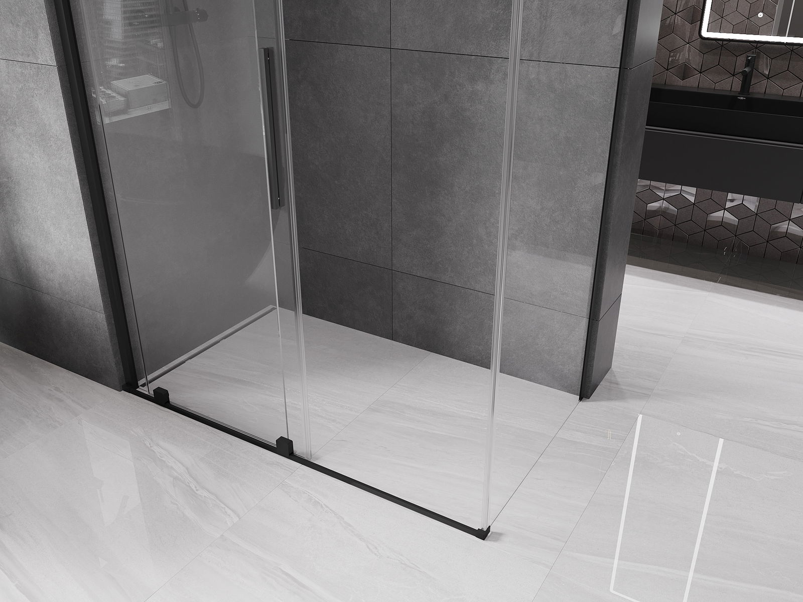 Mexen Velar sliding shower cabin 160 x 80 cm, transparent, black - 871-160-080-01-70