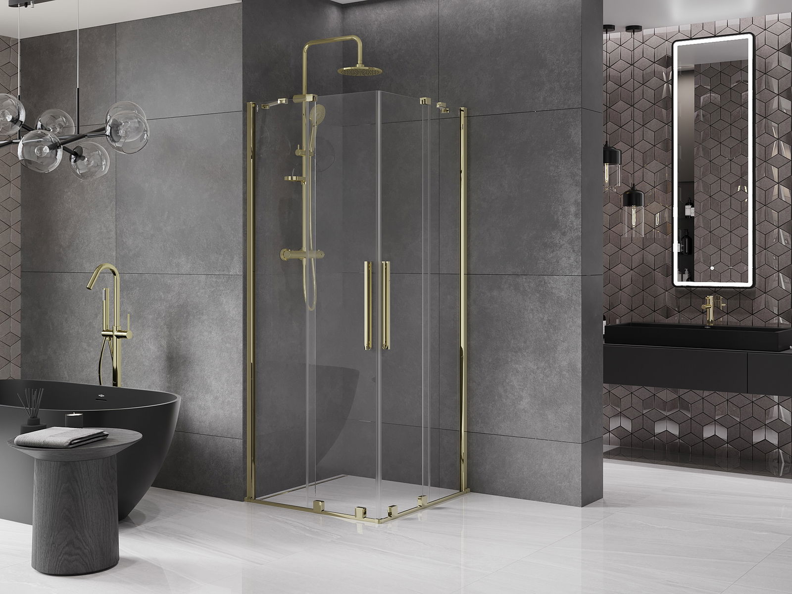 Mexen Velar Duo Sliding Shower Enclosure 90 x 90 cm, Transparent, Gold - 871-090-090-02-50