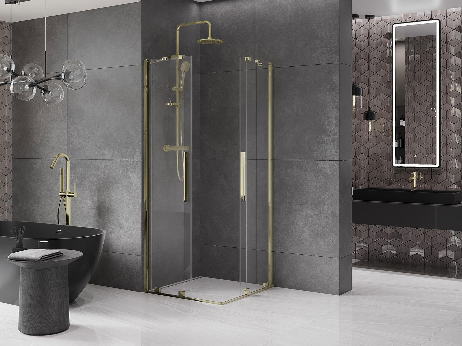 A handy and convenient handle made of stainless steel. The stylish shape combined with a finish that matches the color of the profiles gives a modern and stylish look, highlighting the aesthetics of any bathroom.