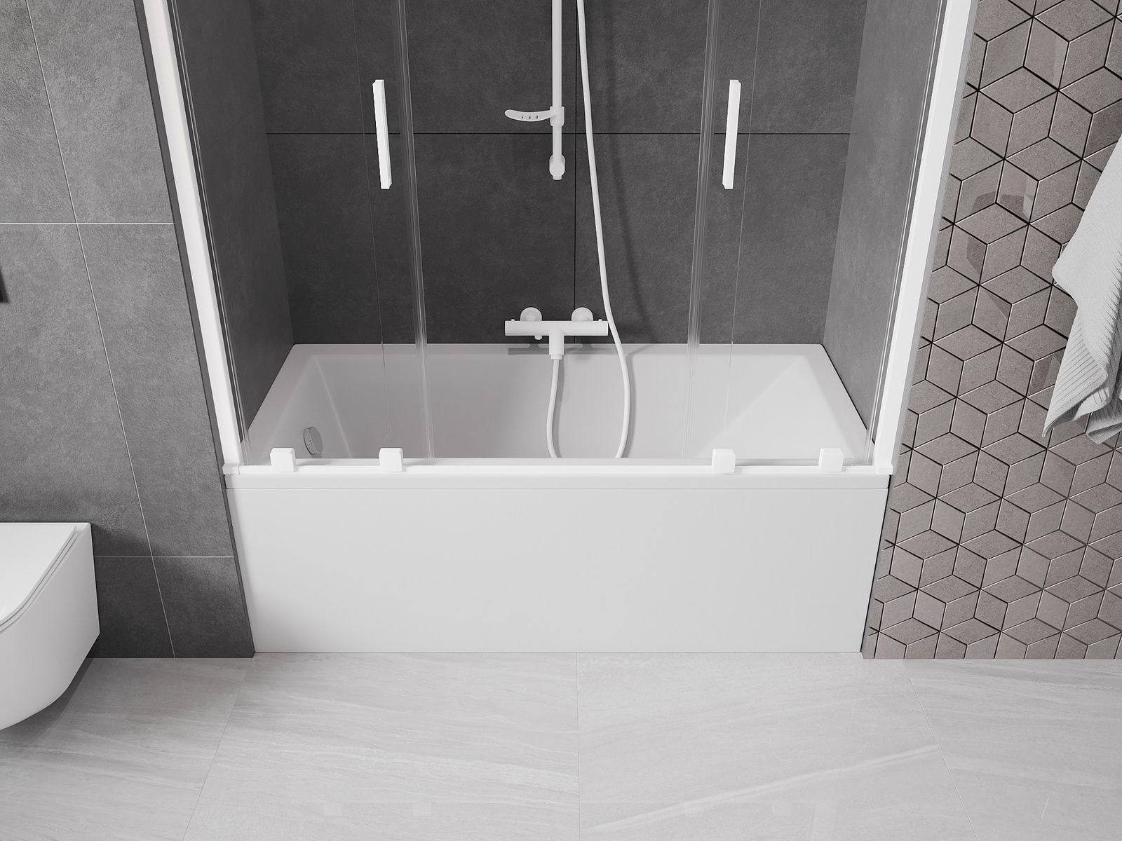 Effective protection against water spilling during bathing. The screen has seals that perfectly fit the glass surface and the edge of the bathtub. A functional solution ensuring safety and easy maintenance of cleanliness.