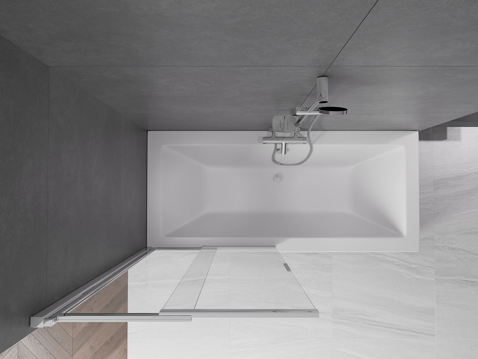 Effective protection against water spilling during bathing. The screen has seals that perfectly fit the glass surface and the edge of the bathtub. A functional solution ensuring safety and easy maintenance of cleanliness.
