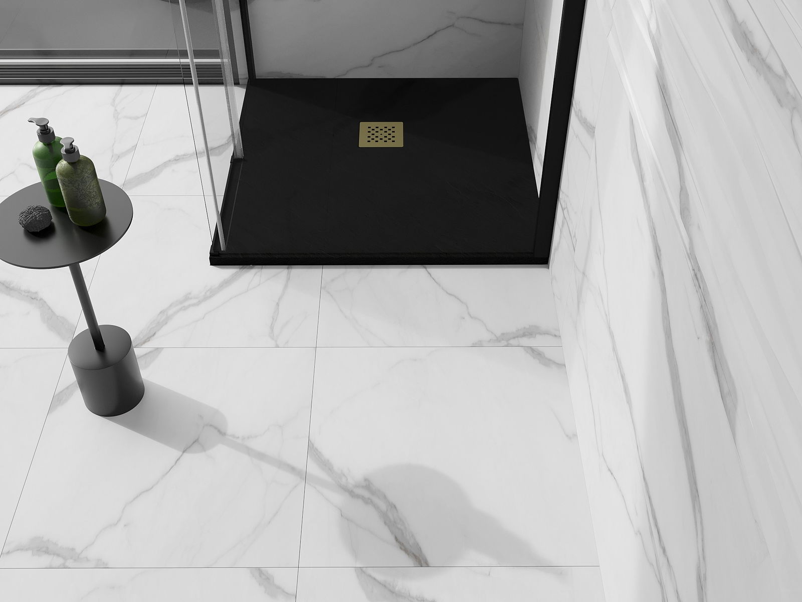The shower tray is designed in such a way that water can freely flow towards the drain. It ensures quick and effective drainage of water from the surface of the shower tray, preventing the formation of puddles and flooding the bathroom.