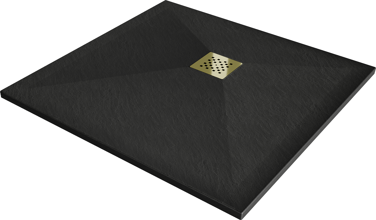 Mexen Stone+ composite square shower tray 90 x 90 cm, black, gold cover - 44709090-G