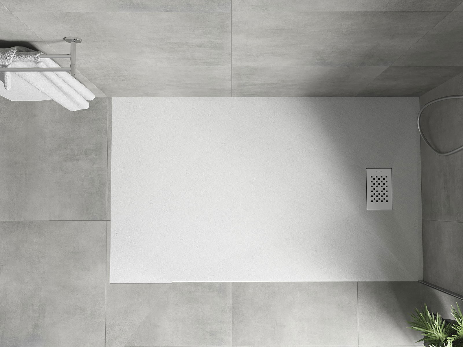 The shower tray is designed in such a way that water can freely flow towards the drain. It ensures quick and effective drainage of water from the surface of the shower tray, preventing the formation of puddles and flooding the bathroom.