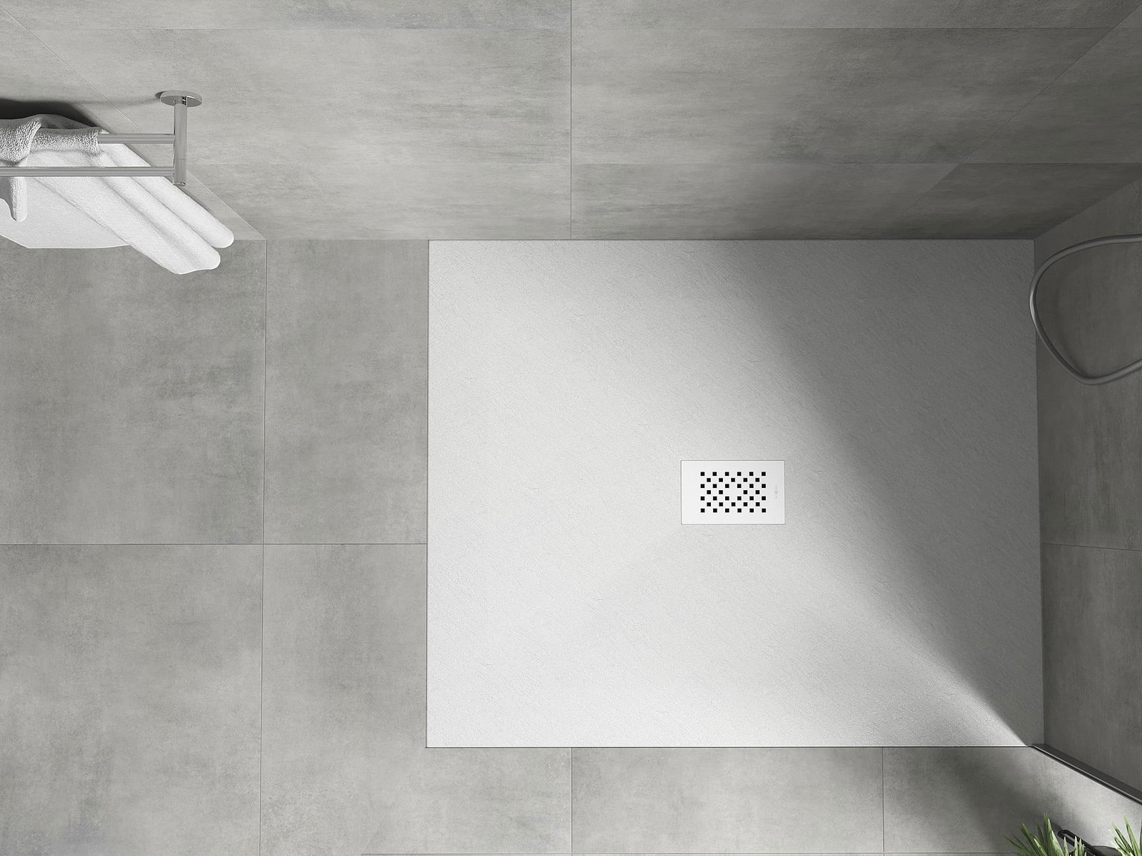 The shower tray is designed in such a way that water can freely flow towards the drain. It ensures quick and effective drainage of water from the surface of the shower tray, preventing the formation of puddles and flooding the bathroom.