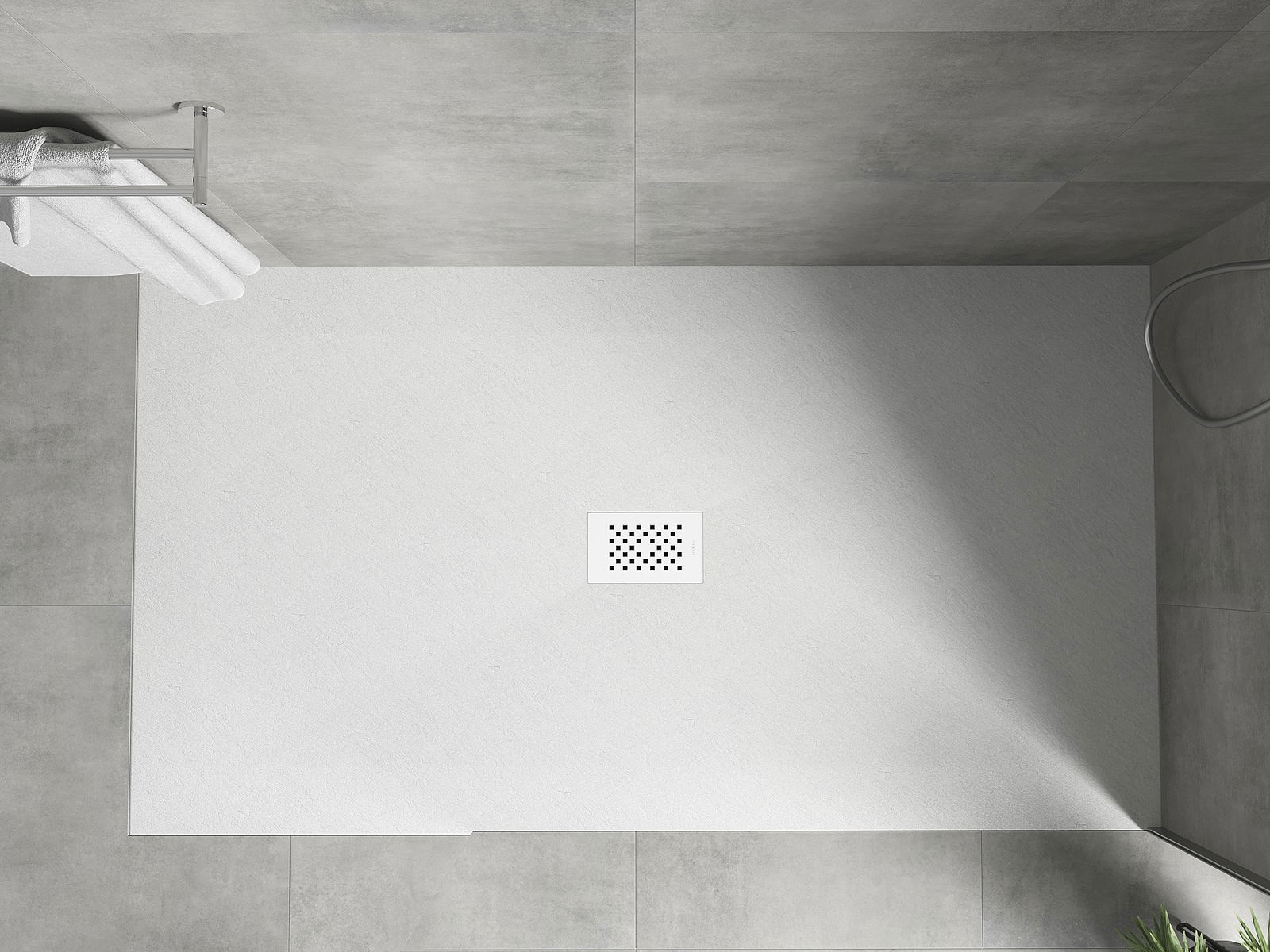 The shower tray is designed in such a way that water can freely flow towards the drain. It ensures quick and effective drainage of water from the surface of the shower tray, preventing the formation of puddles and flooding the bathroom.
