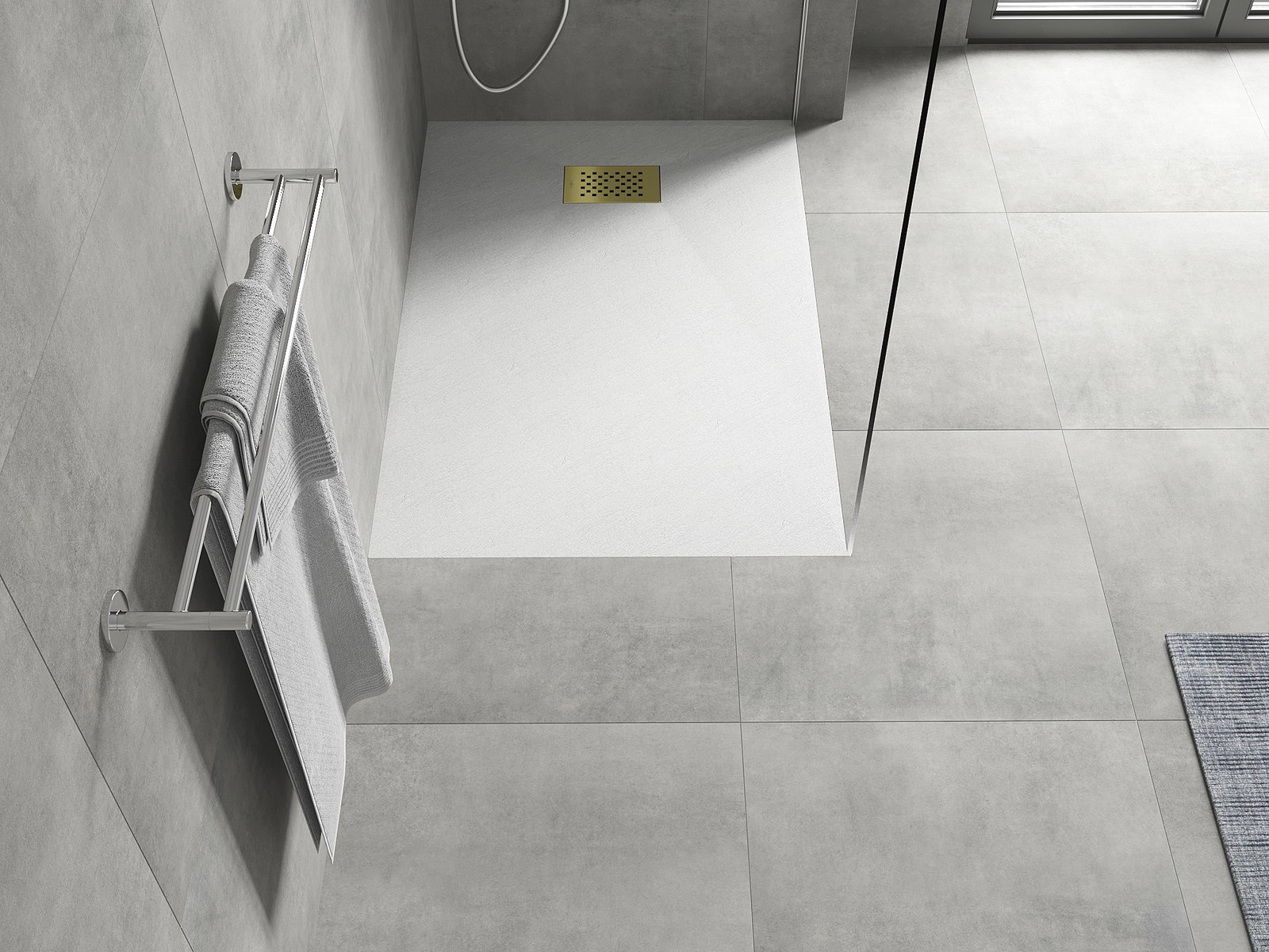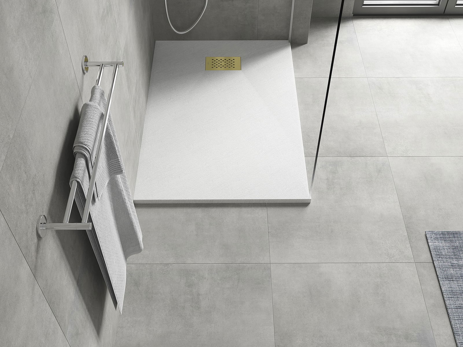 The shower tray is designed in such a way that water can freely flow towards the drain. It ensures quick and effective drainage of water from the surface of the shower tray, preventing the formation of puddles and flooding the bathroom.