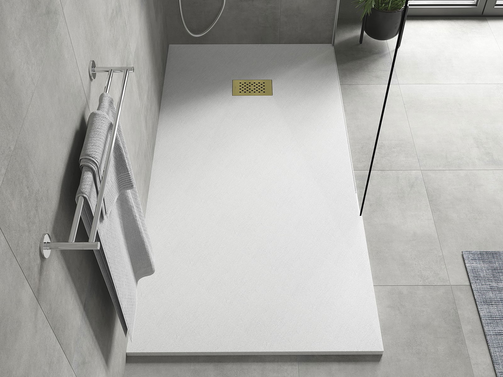 The shower tray is designed in such a way that water can freely flow towards the drain. It ensures quick and effective drainage of water from the surface of the shower tray, preventing the formation of puddles and flooding the bathroom.