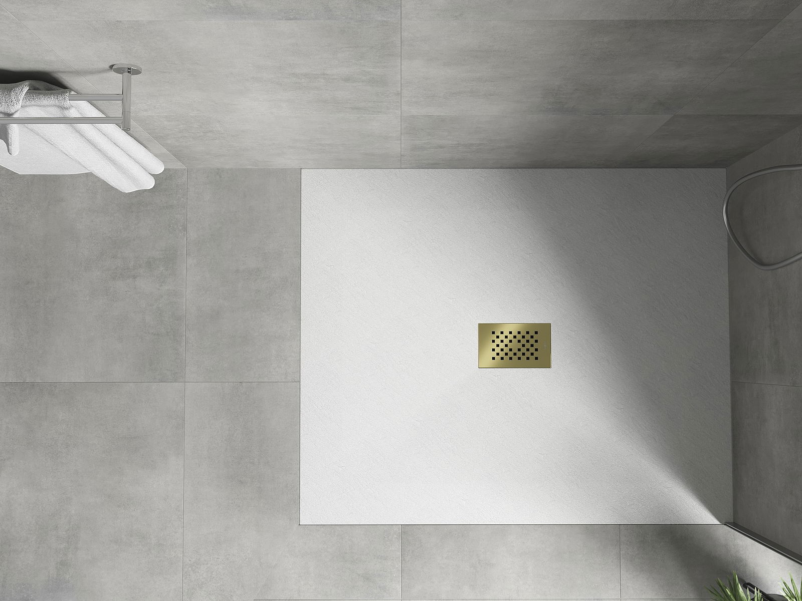 The shower tray is designed in such a way that water can freely flow towards the drain. It ensures quick and effective drainage of water from the surface of the shower tray, preventing the formation of puddles and flooding the bathroom.