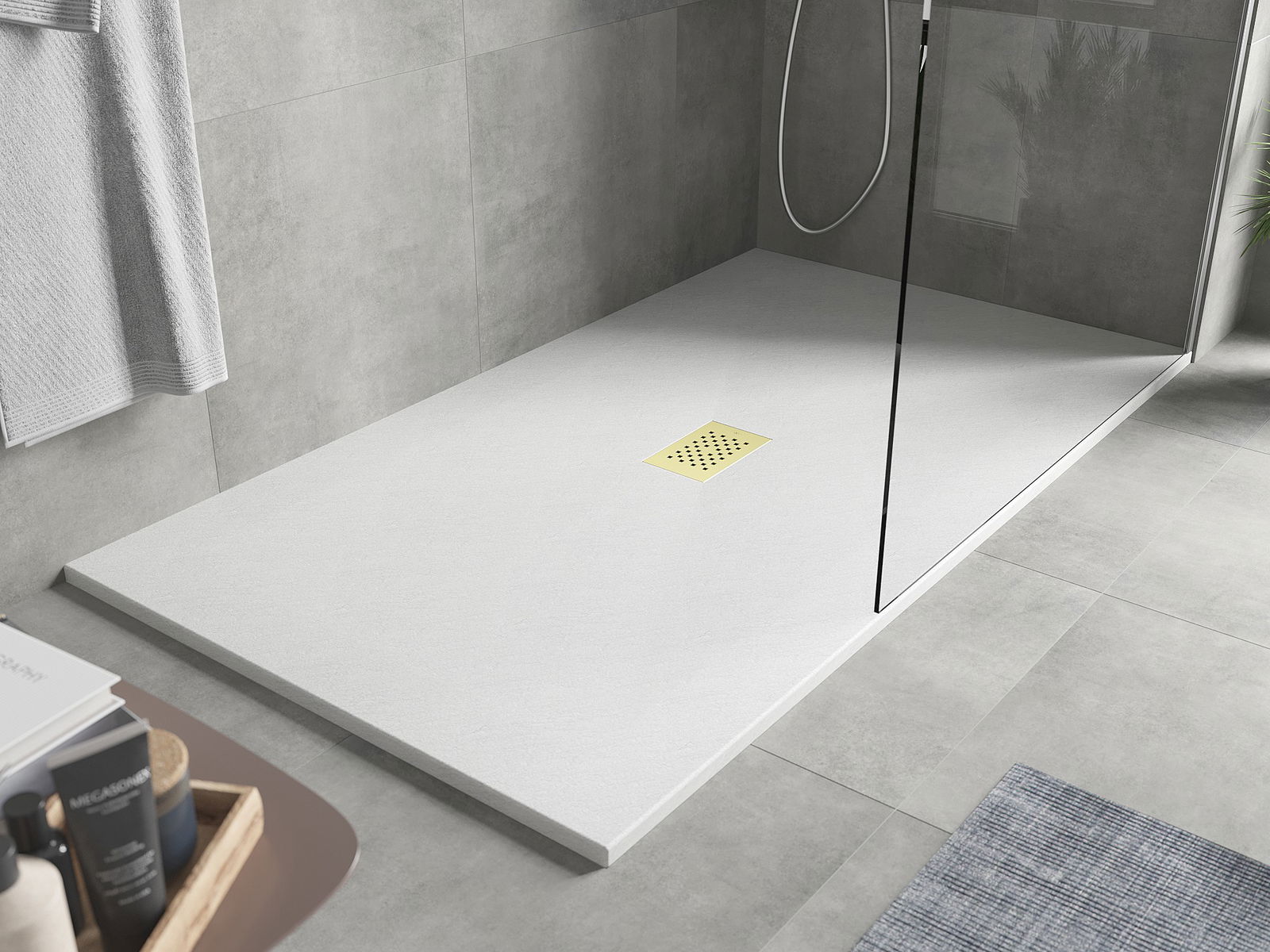 The shower tray is designed in such a way that water can freely flow towards the drain. It ensures quick and effective drainage of water from the surface of the shower tray, preventing the formation of puddles and flooding the bathroom.