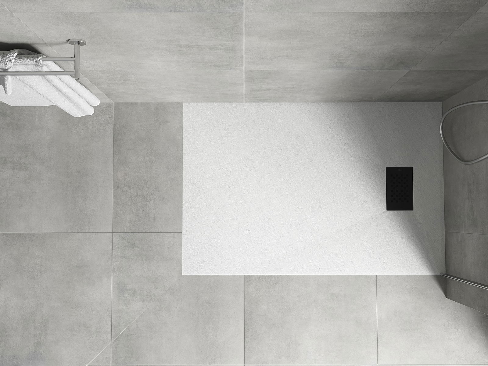 The shower tray is designed in such a way that water can freely flow towards the drain. It ensures quick and effective drainage of water from the surface of the shower tray, preventing the formation of puddles and flooding the bathroom.