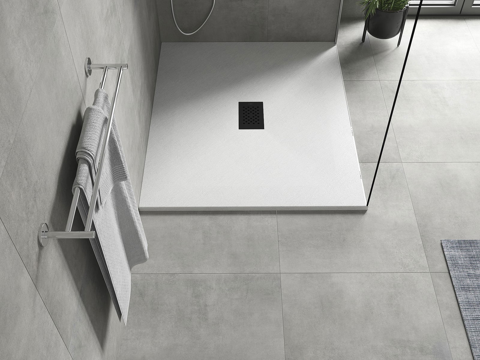 The shower tray is designed in such a way that water can freely flow towards the drain. It ensures quick and effective drainage of water from the surface of the shower tray, preventing the formation of puddles and flooding the bathroom.