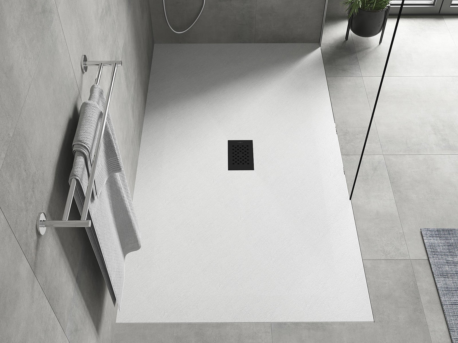 The shower tray is designed in such a way that water can freely flow towards the drain. It ensures quick and effective drainage of water from the surface of the shower tray, preventing the formation of puddles and flooding the bathroom.