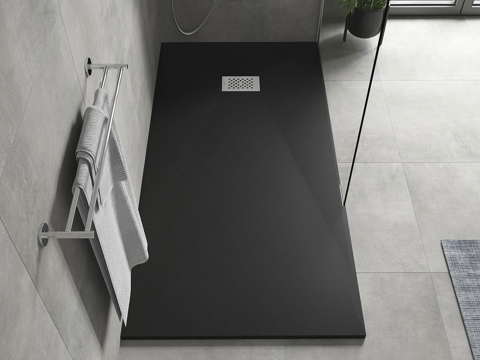 The shower tray is designed in such a way that water can freely flow towards the drain. It ensures quick and effective drainage of water from the surface of the shower tray, preventing the formation of puddles and flooding the bathroom.