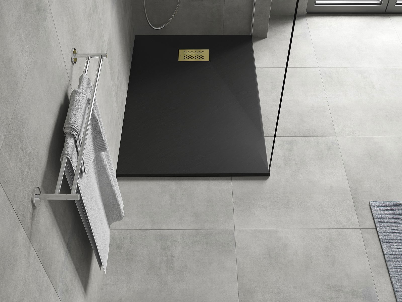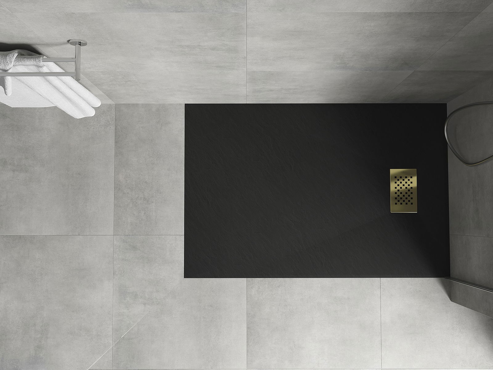 The shower tray is designed in such a way that water can freely flow towards the drain. It ensures quick and effective drainage of water from the surface of the shower tray, preventing the formation of puddles and flooding the bathroom.