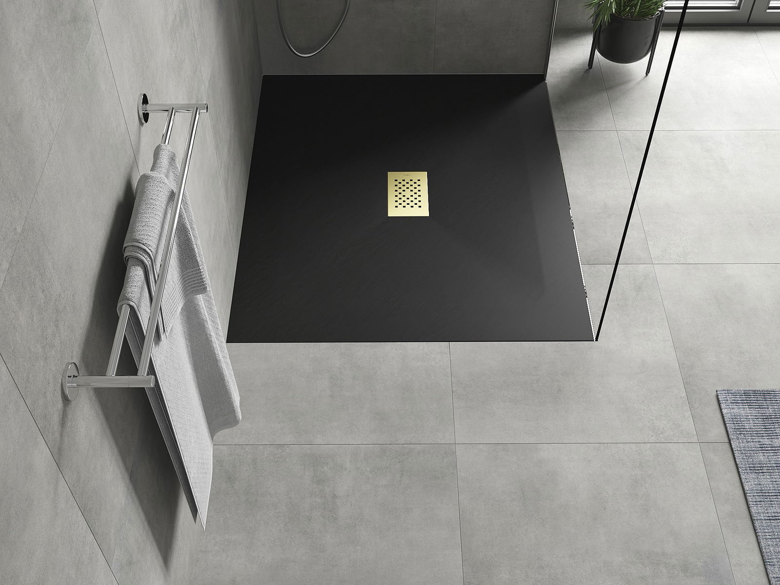 The shower tray is designed in such a way that water can freely flow towards the drain. It ensures quick and effective drainage of water from the surface of the shower tray, preventing the formation of puddles and flooding the bathroom.