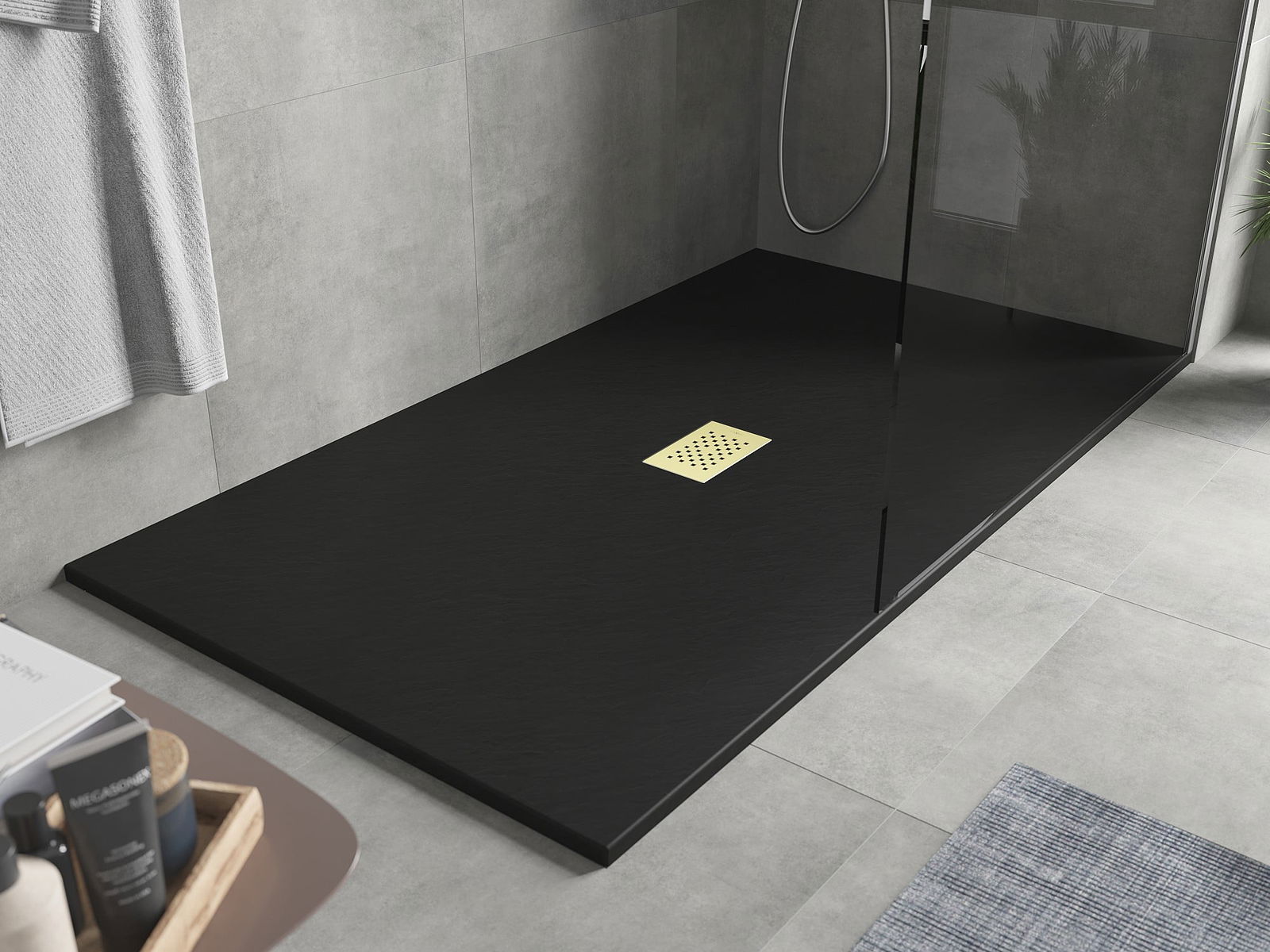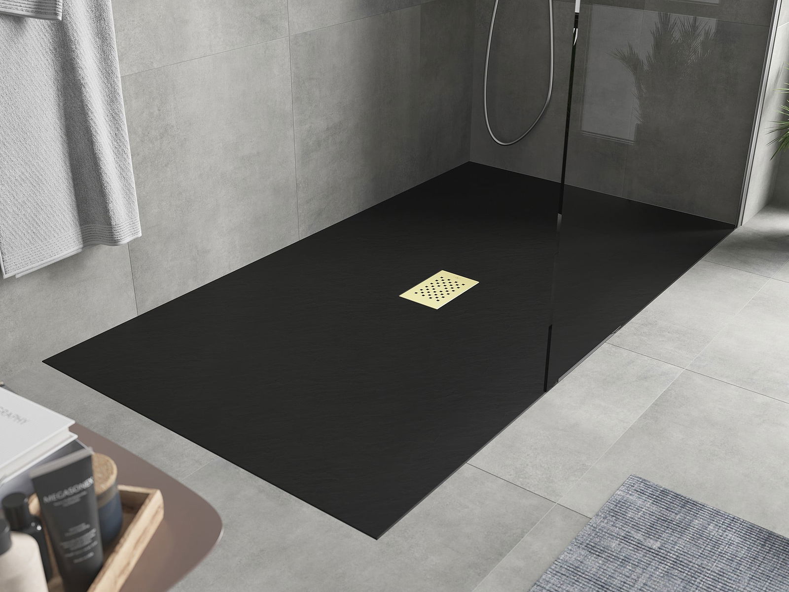 Mexen Hugo rectangular shower tray SMC 180 x 100 cm, black, gold cover - 42701018-G