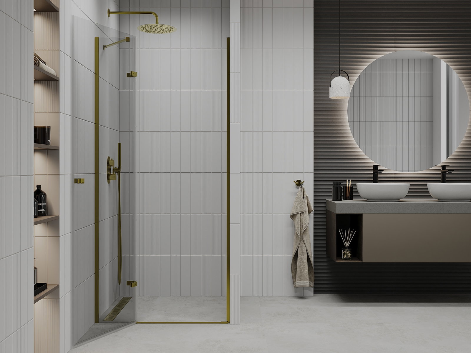A handy and comfortable handle made from durable and resistant metal. Its trendy shape combined with a finish matched to the colour of the profiles gives the whole a modern and stylish look, highlighting the aesthetics of every bathroom.