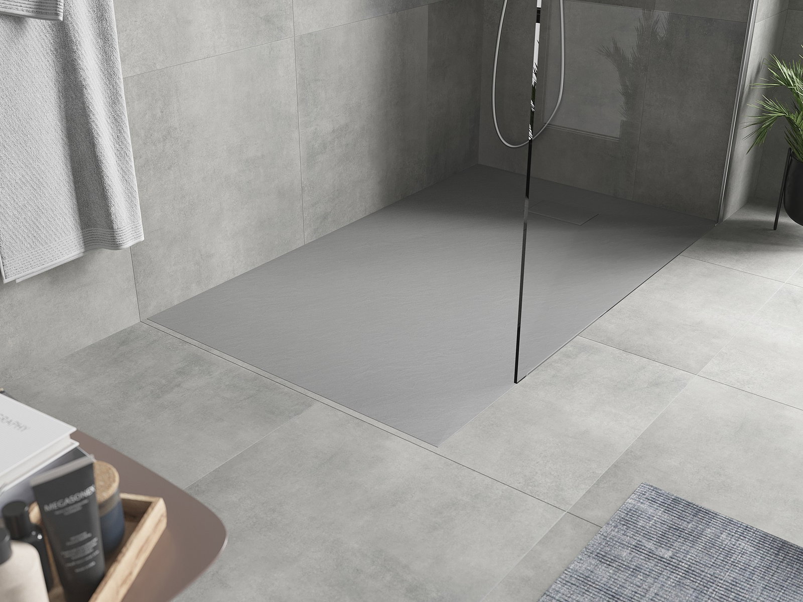 The surface of the shower tray resembles stone in its structure. It is a unique combination of a natural appearance with modern interior design. It adds character, enhances the aesthetics and elegance of the bathroom decor, and delights with its form.
