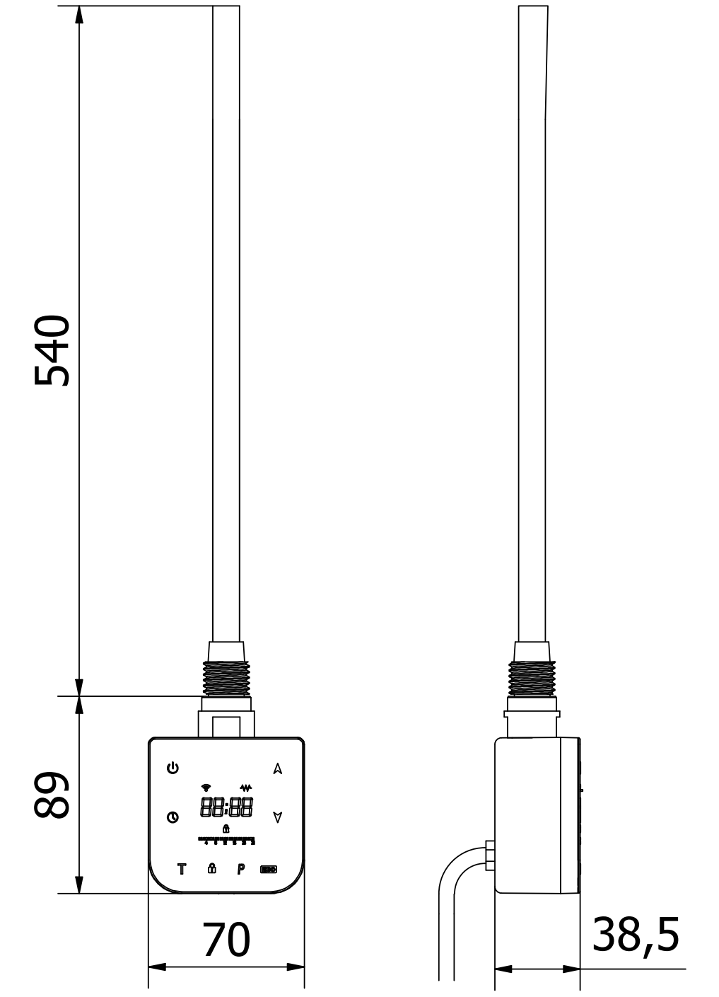 Heating element length: 540 mm