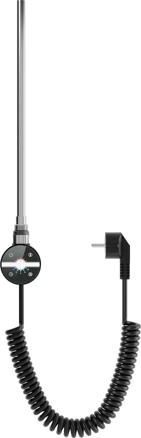 Mexen FA-D22 is a black electric heater with a power of 900 W, providing efficient heating. Its total length is 824 mm, and the heating element length is 750 mm. It is powered by a current of 230V/50 Hz. Equipped with a connection cable of 1.5 m and a G 1/2" thread. The IP44 protection degree and LED indicating operating mode ensure user safety. It has functions such as Sensitive, Comfort, ECO, and Anti-frost, which allow for precise and economical temperature management.