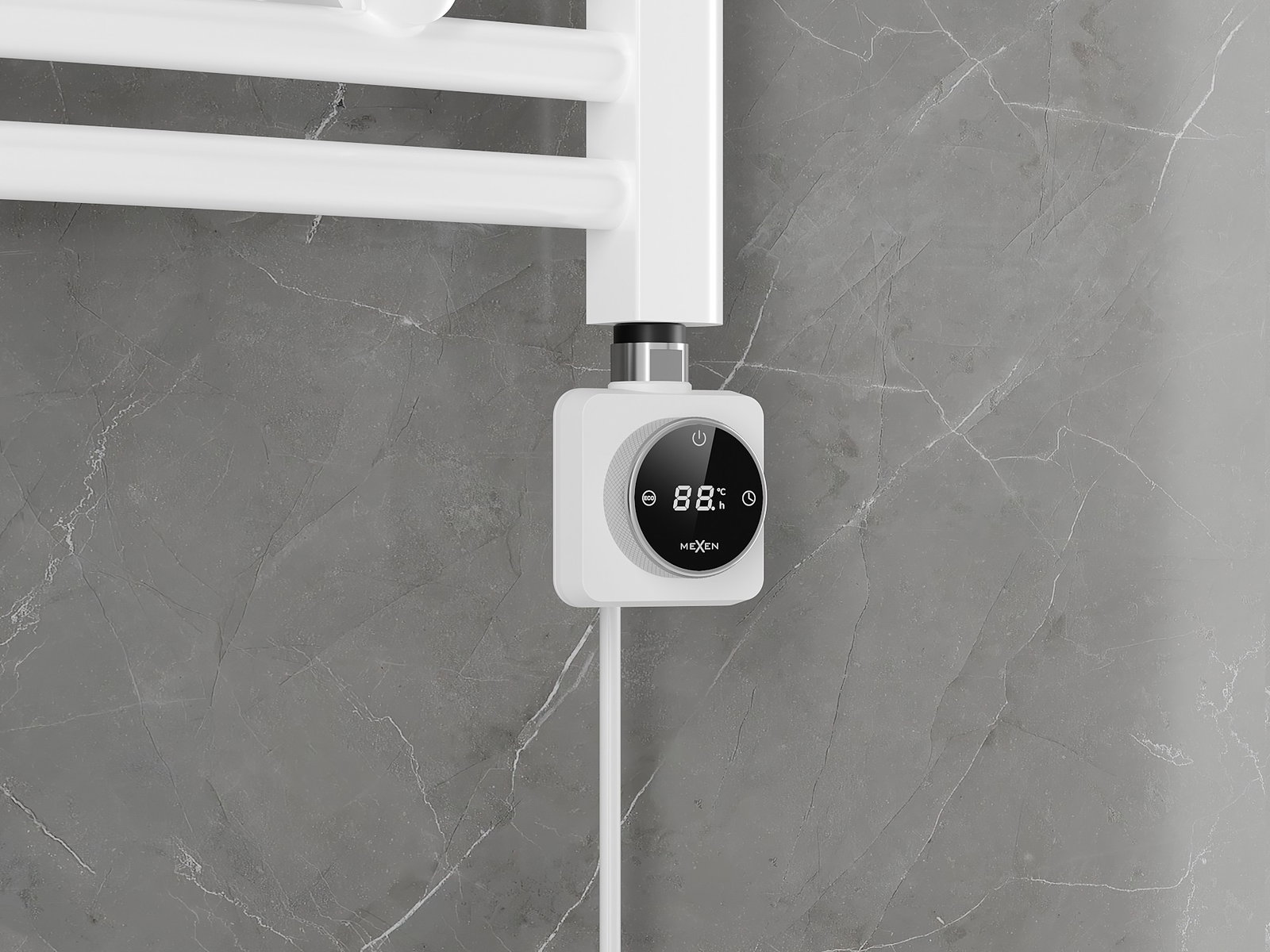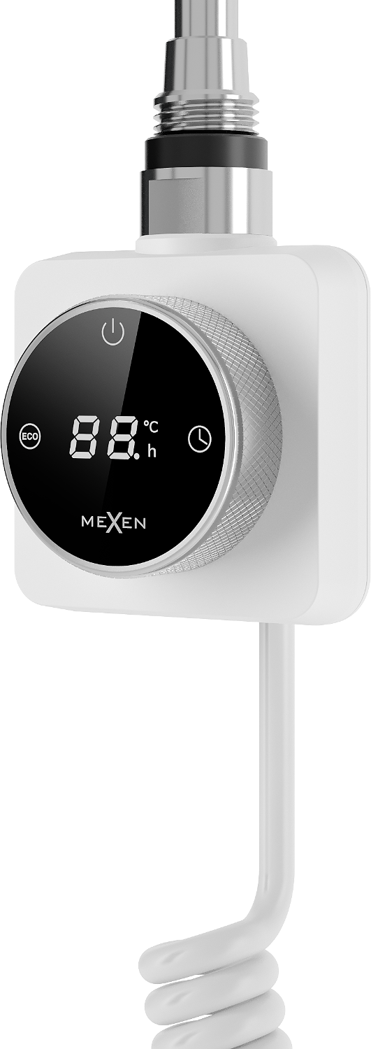 The Mexen FA-FD14 300 W electric heater, white, offers exceptional functionality and efficiency. With a total length of 438 mm and a heating element of 349 mm, it provides effective heating at 300 W power. The device operates at 230V/50 Hz and has a 1.5 m connection cable. Additional features, such as the LED display, protection against 'dry' running, and Sensitive, Comfort, and ECO modes, make it a versatile solution for any bathroom.