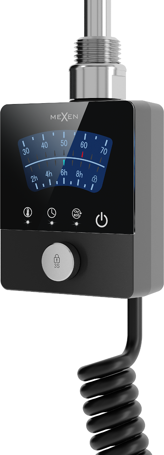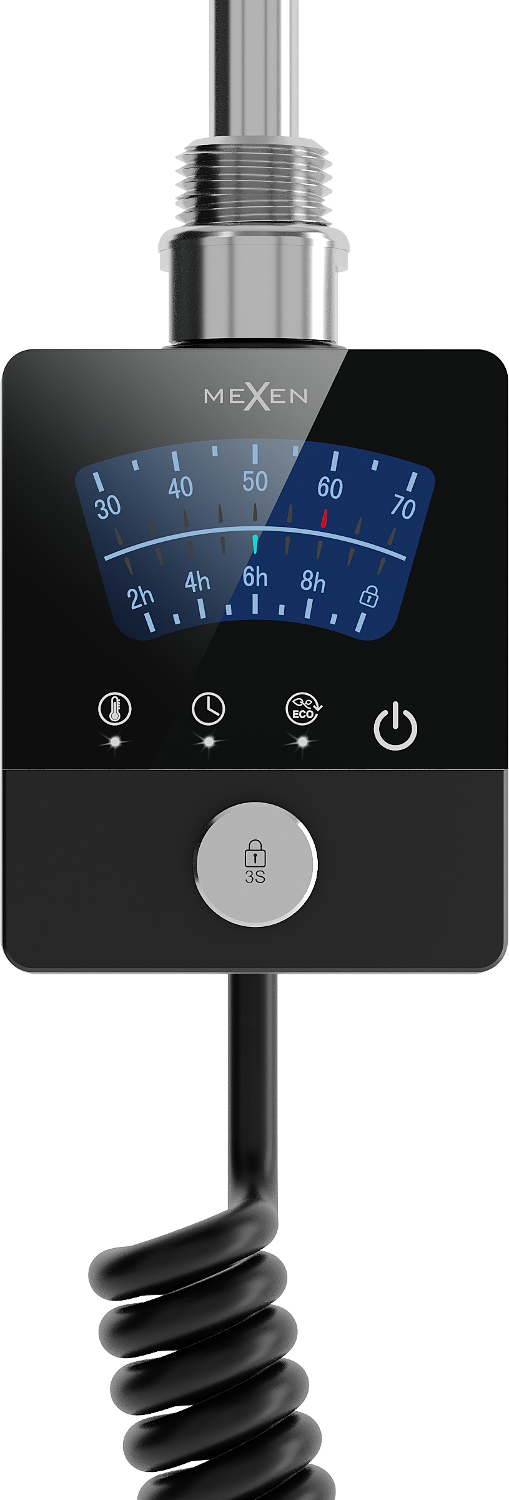 The Mexen FA-BG8 electric heater 300 W in black is a technologically advanced device that provides efficient heating. With a total length of 409 mm and a heating element length of 310 mm, it is ideal for a variety of applications. The heater offers functions such as Sensitive (temperature setting with 5-degree accuracy), Comfort (drying option), Smart (weekly work schedule), ECO (energy saving), Anti-frost (protection against freezing), and parental lock.