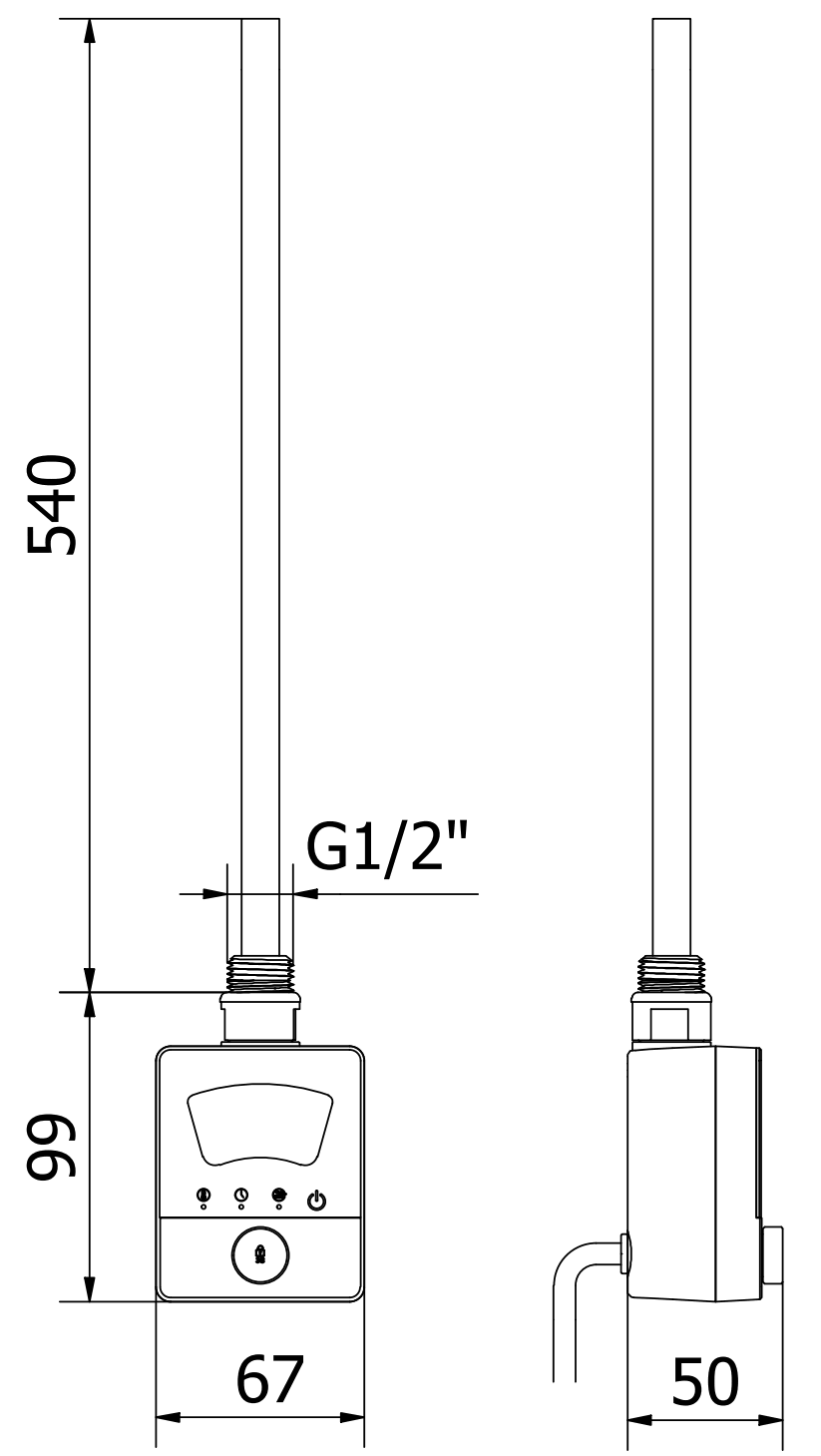Heating element length: 540 mm