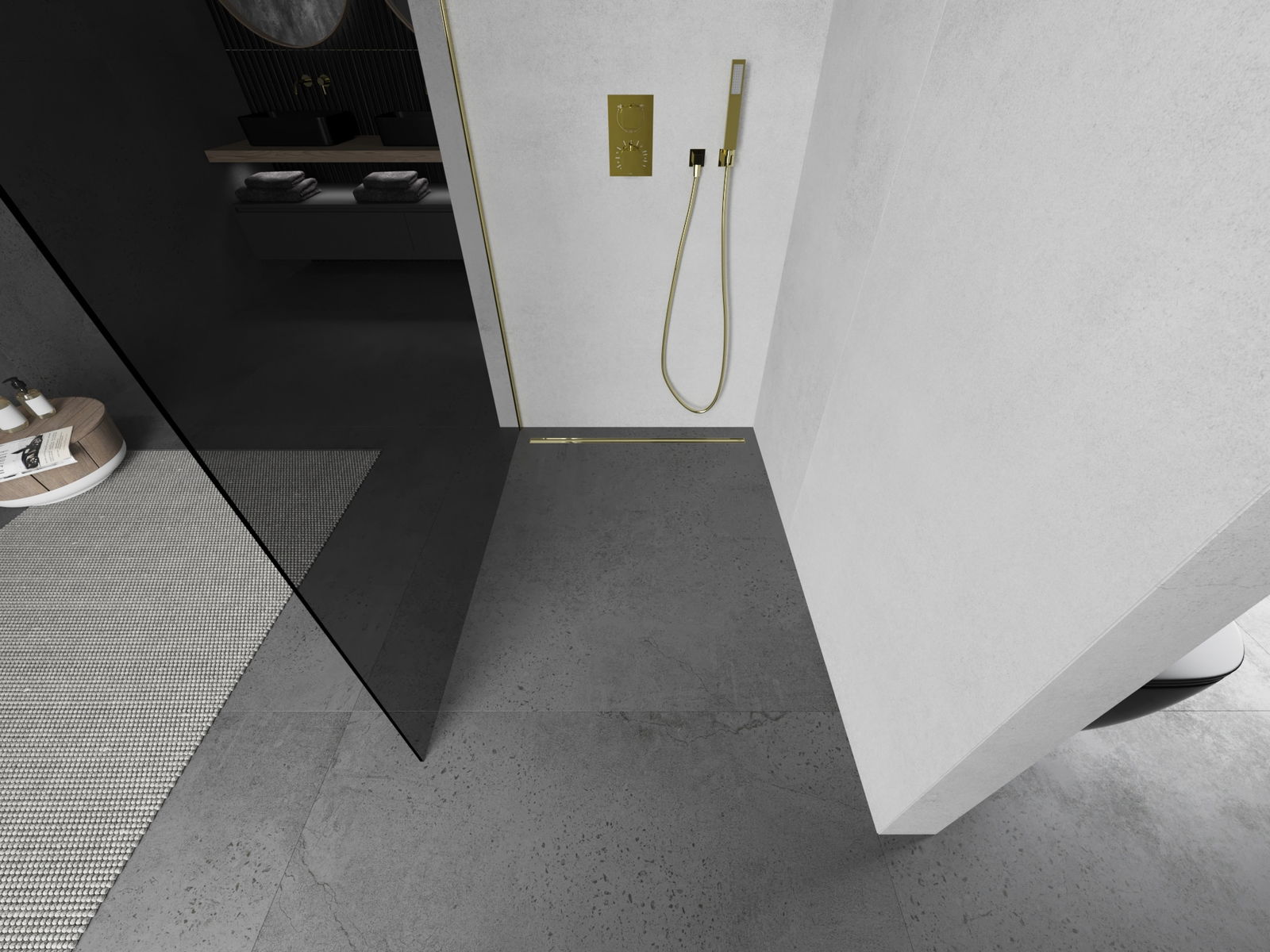Mexen Kioto Walk-in Shower Wall 70 x 200 cm, Graphite 8 mm, Gold - 800-070-101-50-40